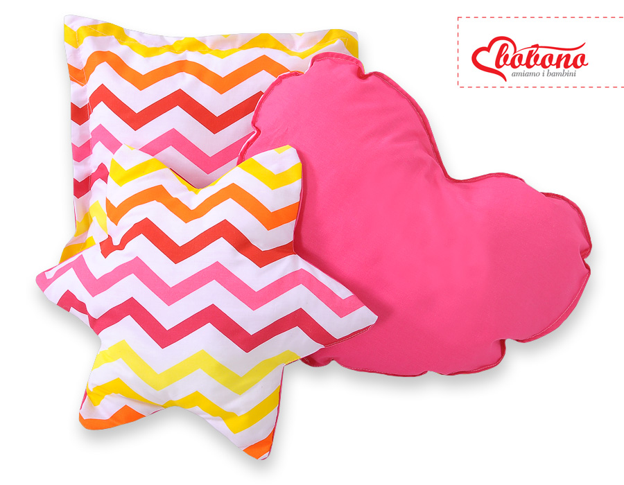 Kleinbaby.nl » Speelgoed Knuffels » Tipi-tenten » 3-delige Kussenset » 3-delige Kussenset Roze Geel Zigzag