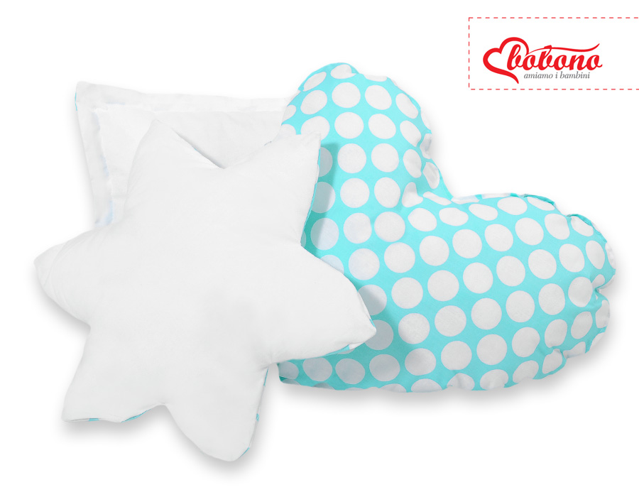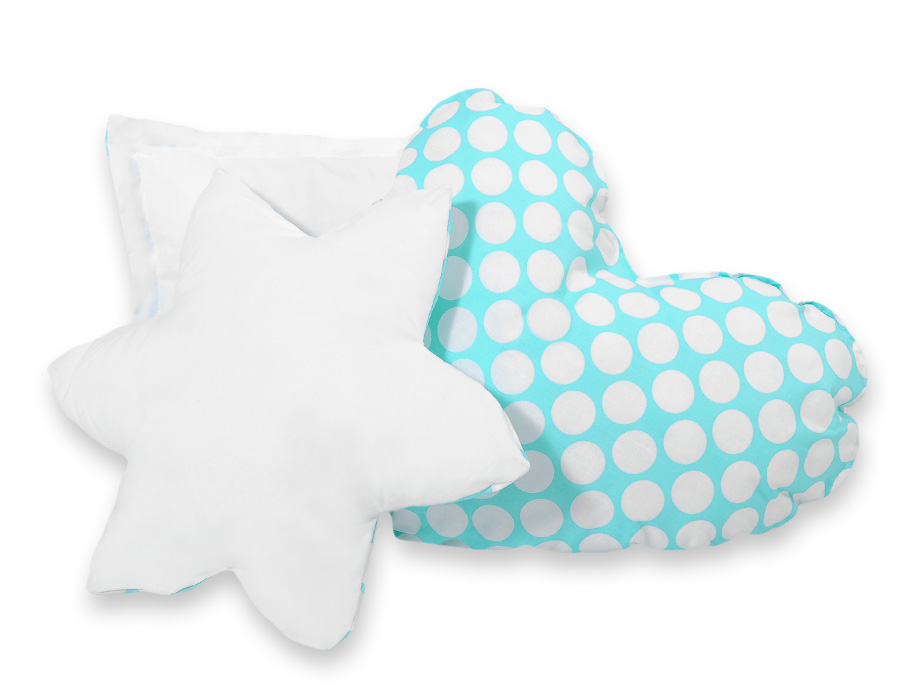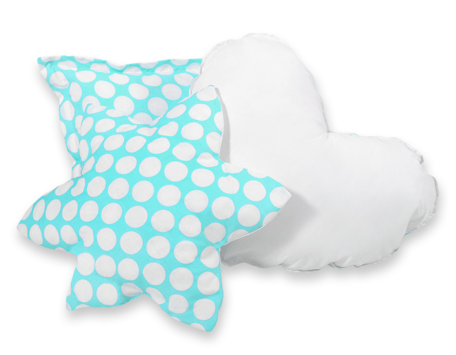 Elk kussen heeft een verschillende, unieke en decoratieve vorm. De kussens zijn tweekleurig - elke zijde is gemaakt van een verschillend materiaal. Ook geschikt als kleurrijke decoratie voor de kinderkamer.