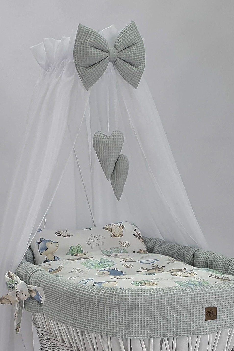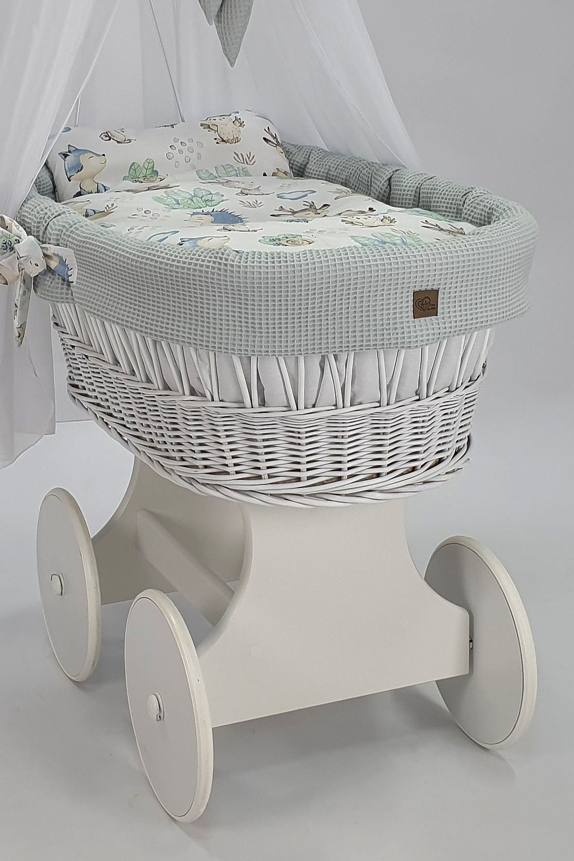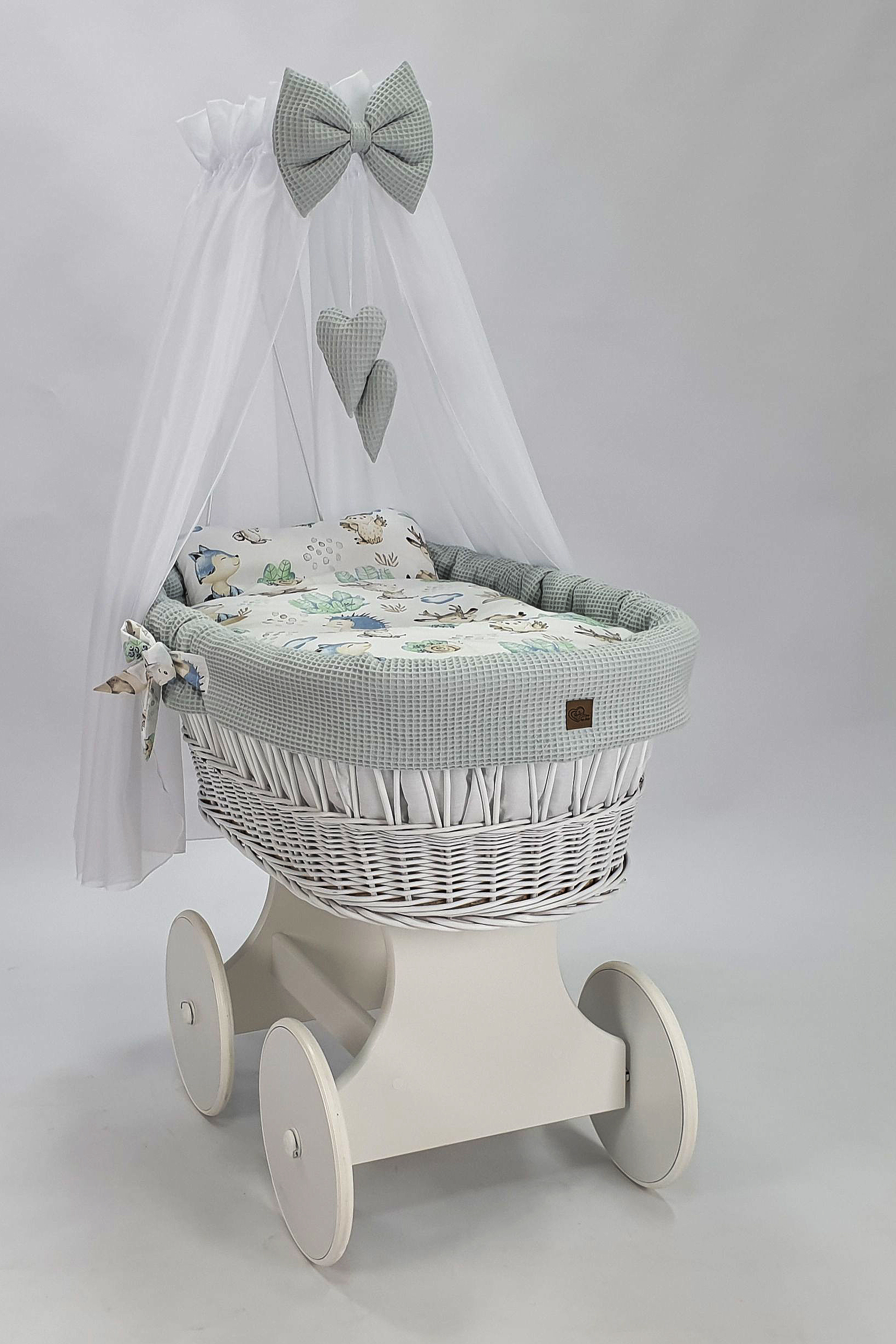 Comfort en veiligheid: Het wiegje heeft een ovale vorm, waardoor jouw baby zich beschermd en veilig voelt. De royale afmetingen van 90x55x30 cm geven voldoende ruimte om comfortabel te slapen. De zachte bedtextielset van 100% katoen met OEKO-TEX-certificaat zorgt voor een aangenaam huidcontact en een warm gevoel.
