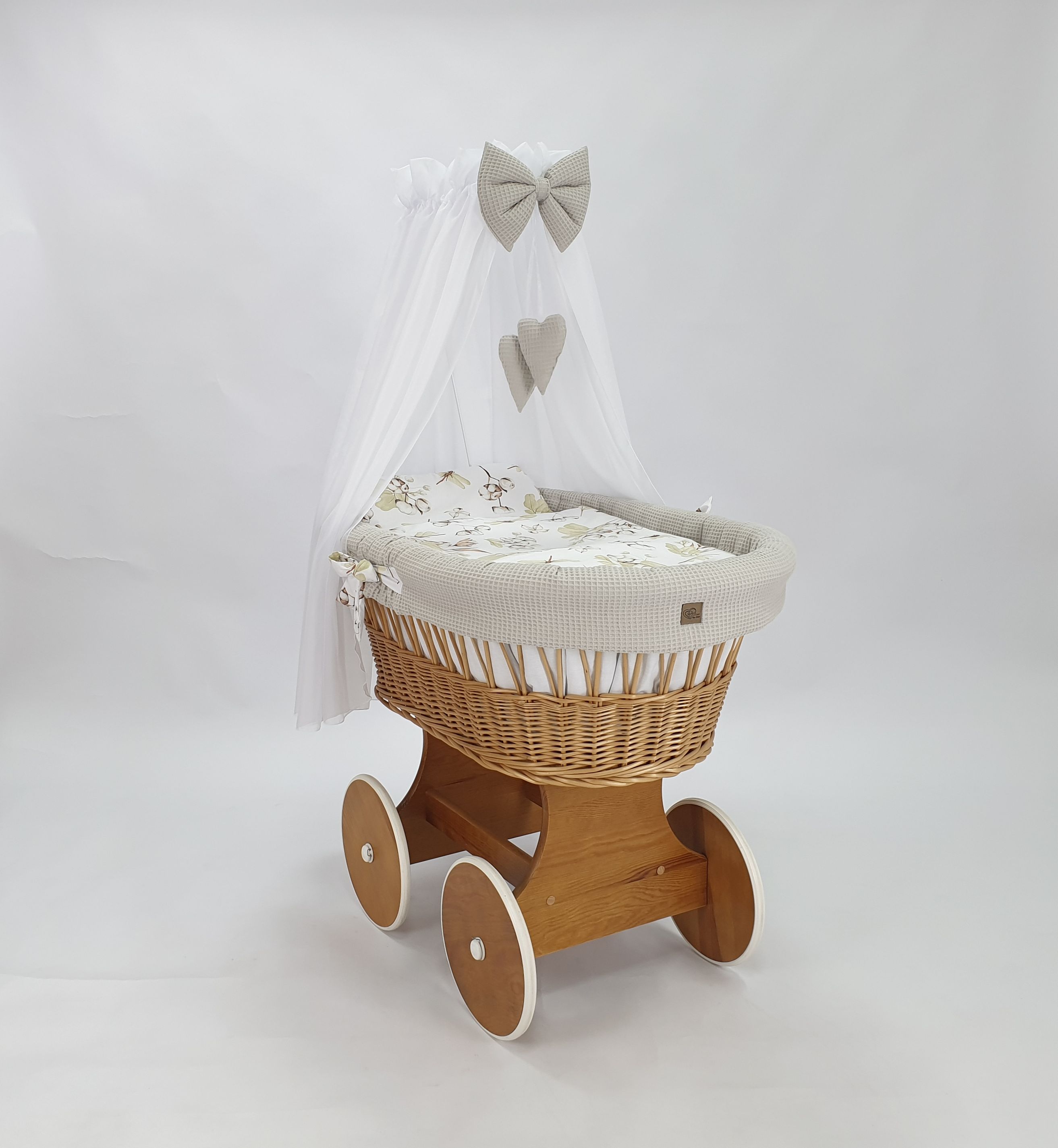 Praktisch en flexibel: Dankzij de grote houten wielen met rubberen banden kun je het wiegje gemakkelijk verplaatsen op zowel parket als tegels – vrijwel geruisloos! Twee ingebouwde remmen zorgen voor extra veiligheid wanneer nodig.