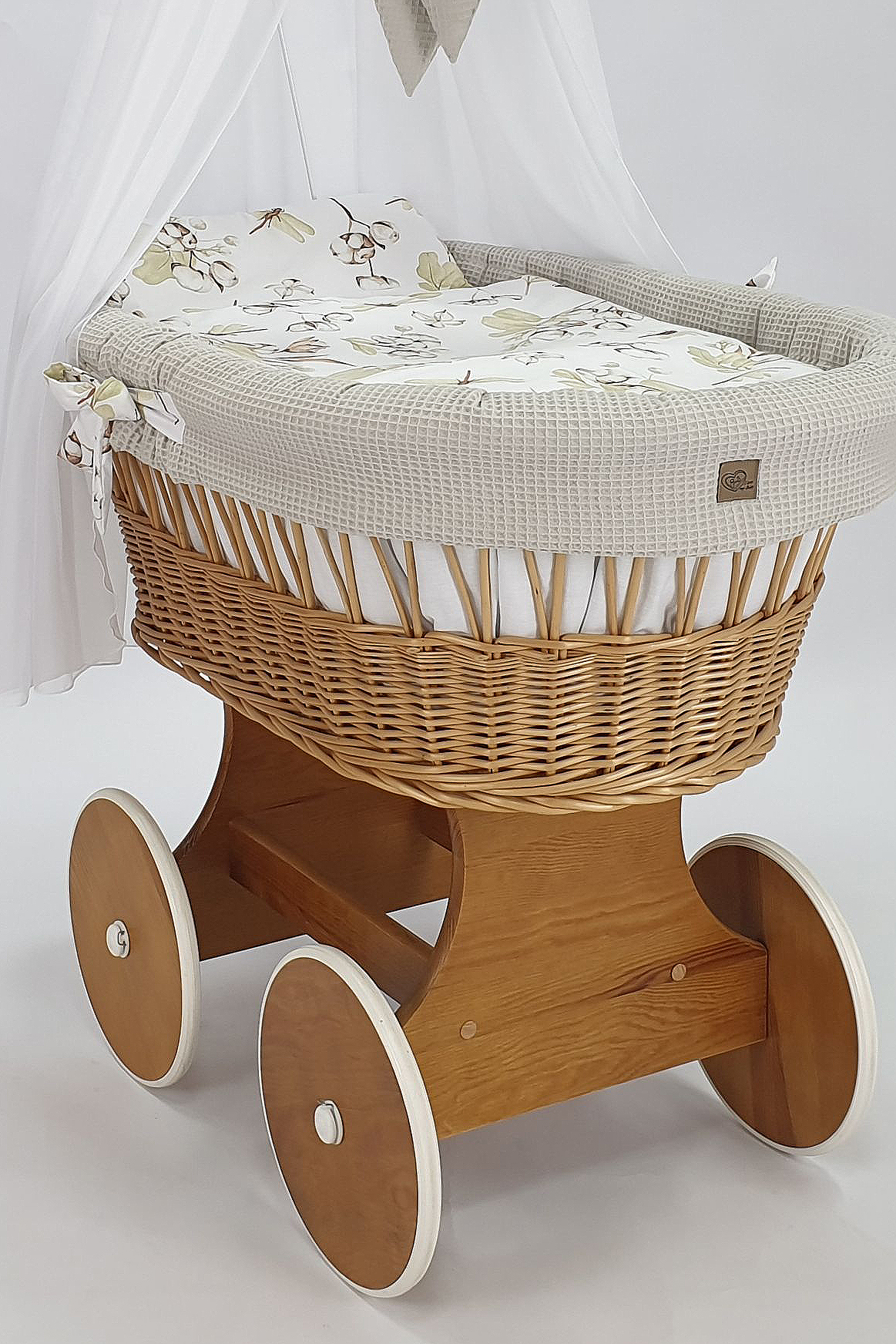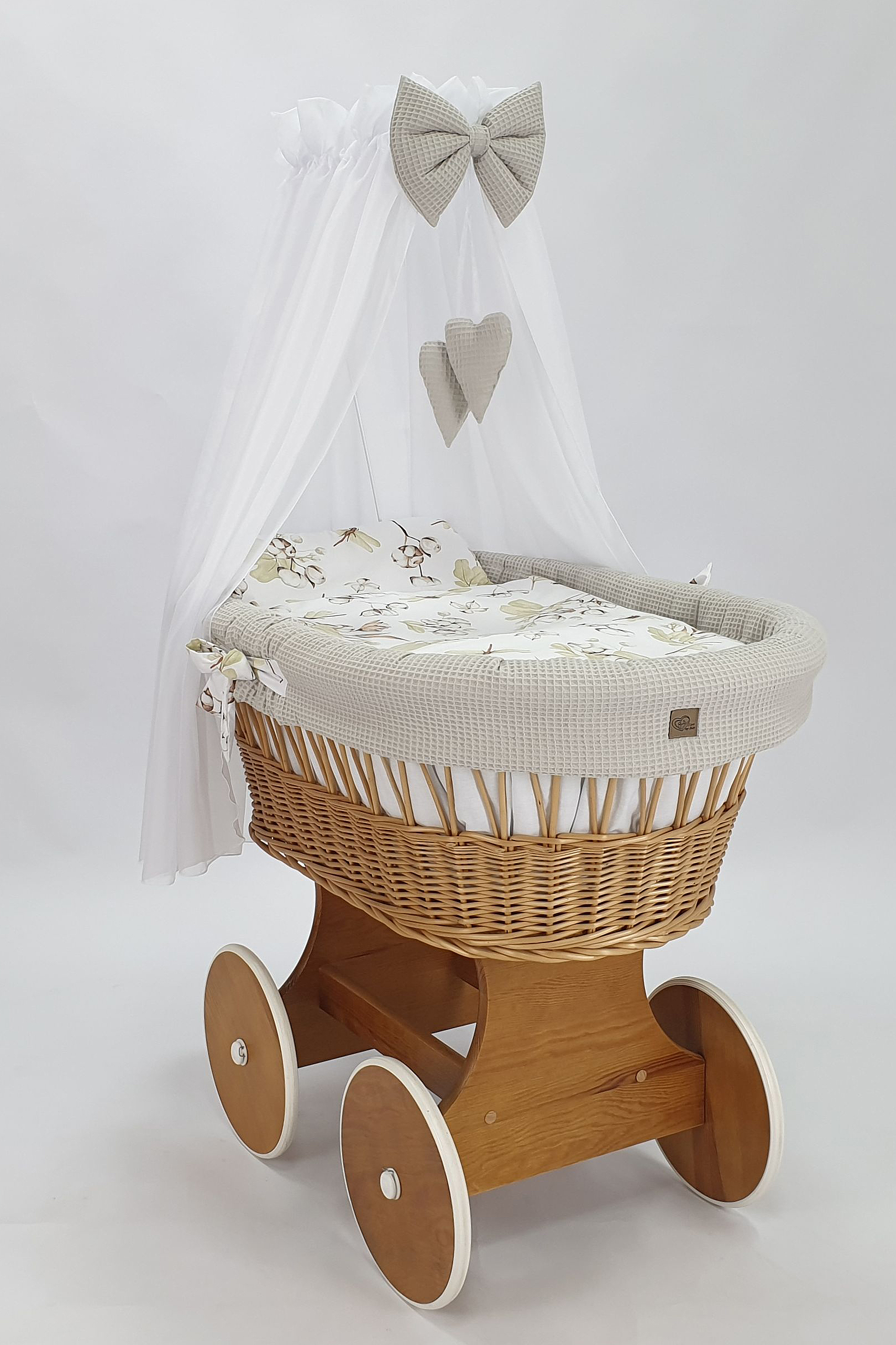 Comfort en veiligheid: Het wiegje heeft een ovale vorm, waardoor jouw baby zich beschermd en veilig voelt. De royale afmetingen van 90x55x30 cm geven voldoende ruimte om comfortabel te slapen. De zachte bedtextielset van 100% katoen met OEKO-TEX-certificaat zorgt voor een aangenaam huidcontact en een warm gevoel.