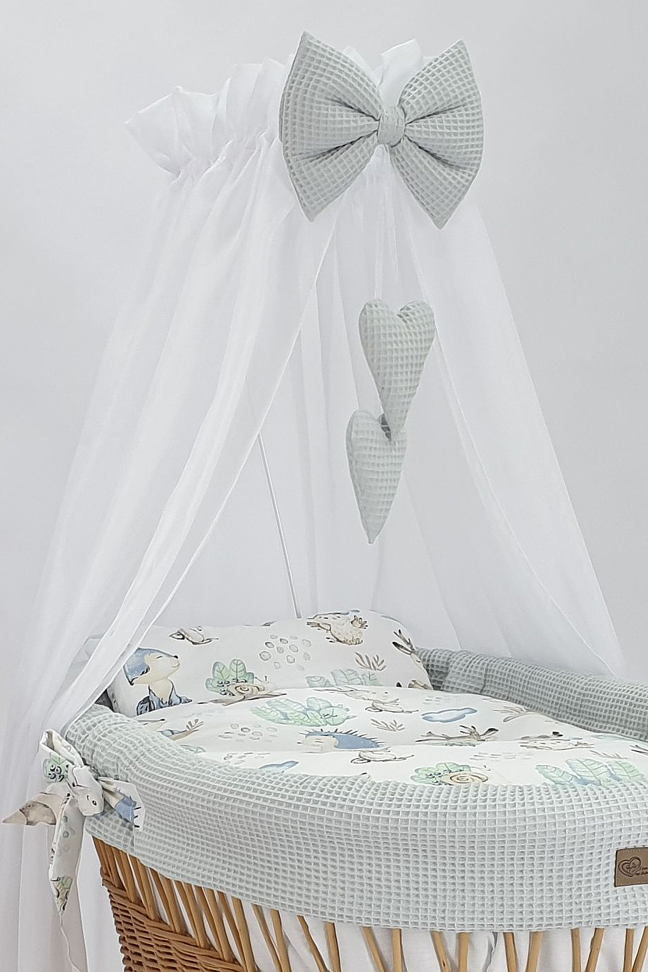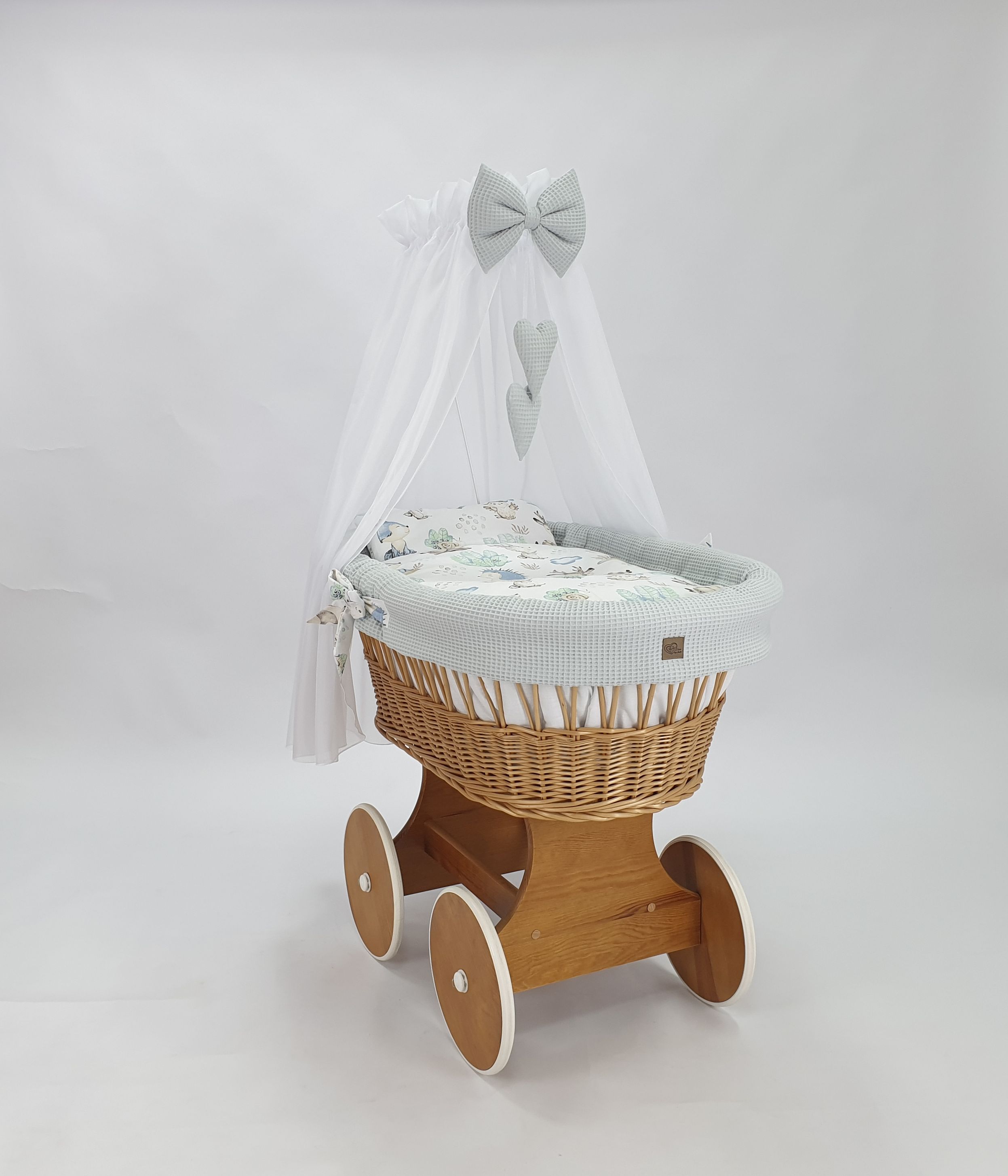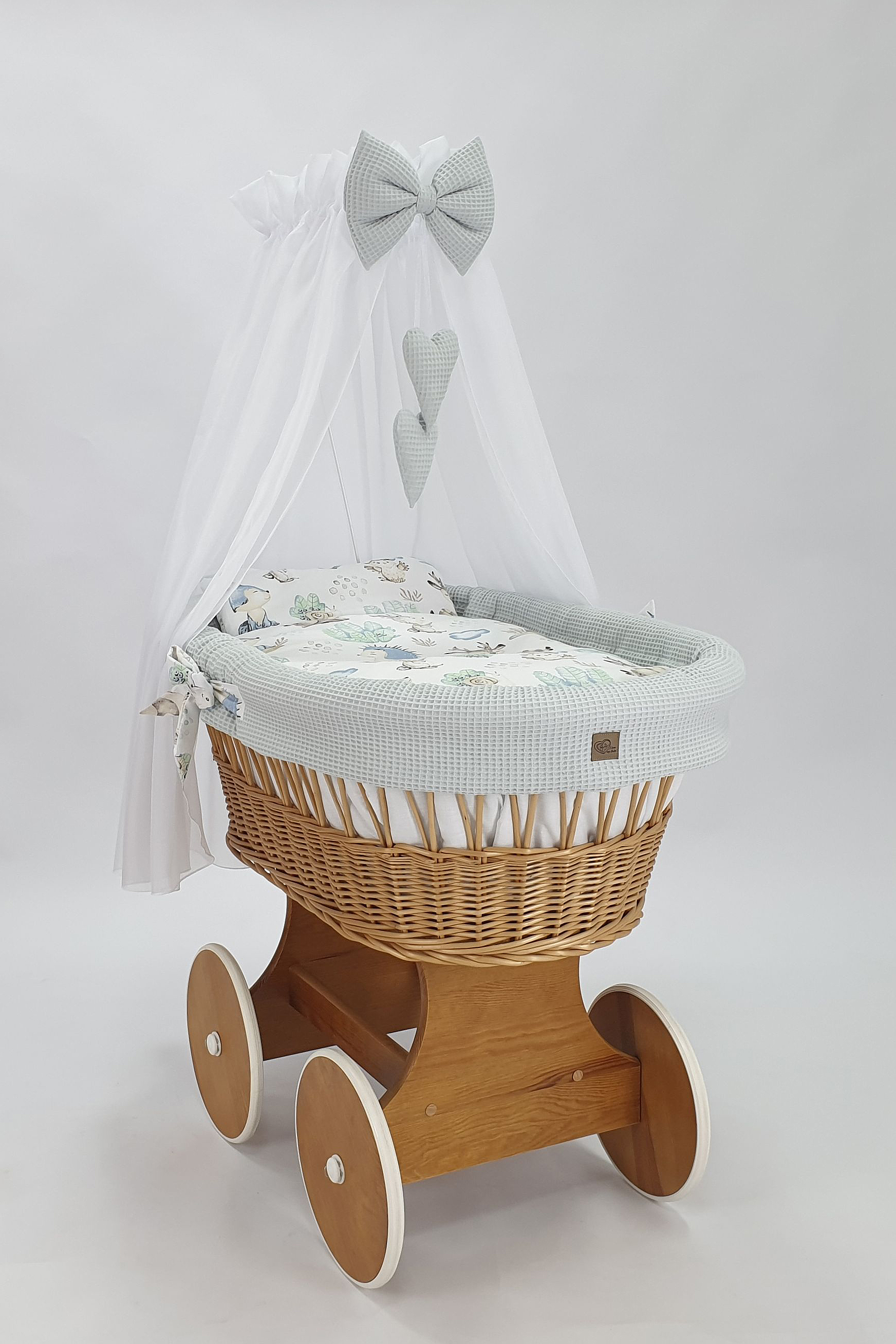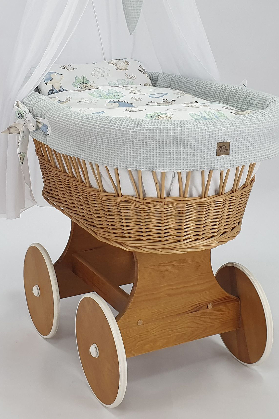 Comfort en veiligheid: Het wiegje heeft een ovale vorm, waardoor jouw baby zich beschermd en veilig voelt. De royale afmetingen van 90x55x30 cm geven voldoende ruimte om comfortabel te slapen. De zachte bedtextielset van 100% katoen met OEKO-TEX-certificaat zorgt voor een aangenaam huidcontact en een warm gevoel.