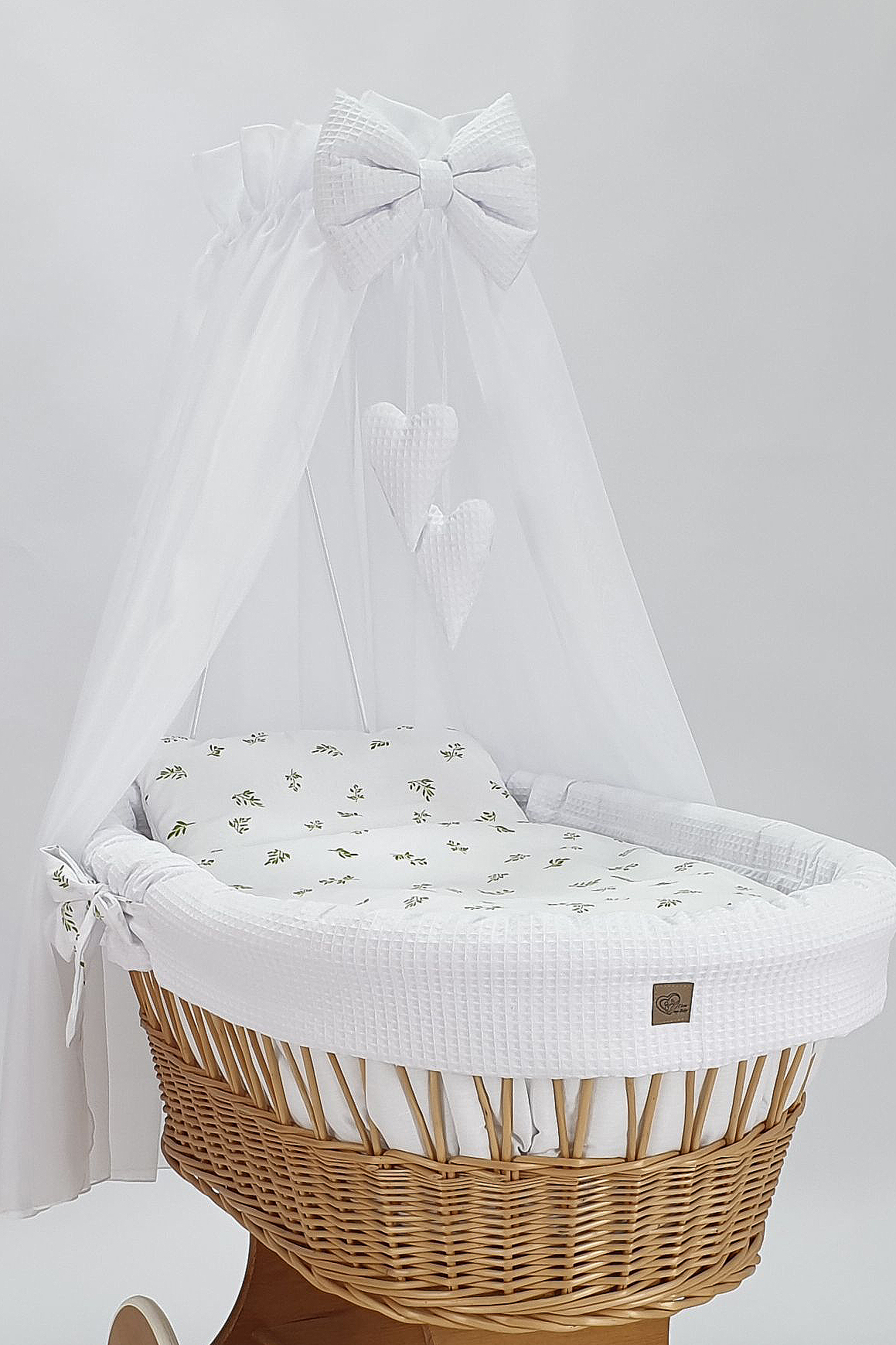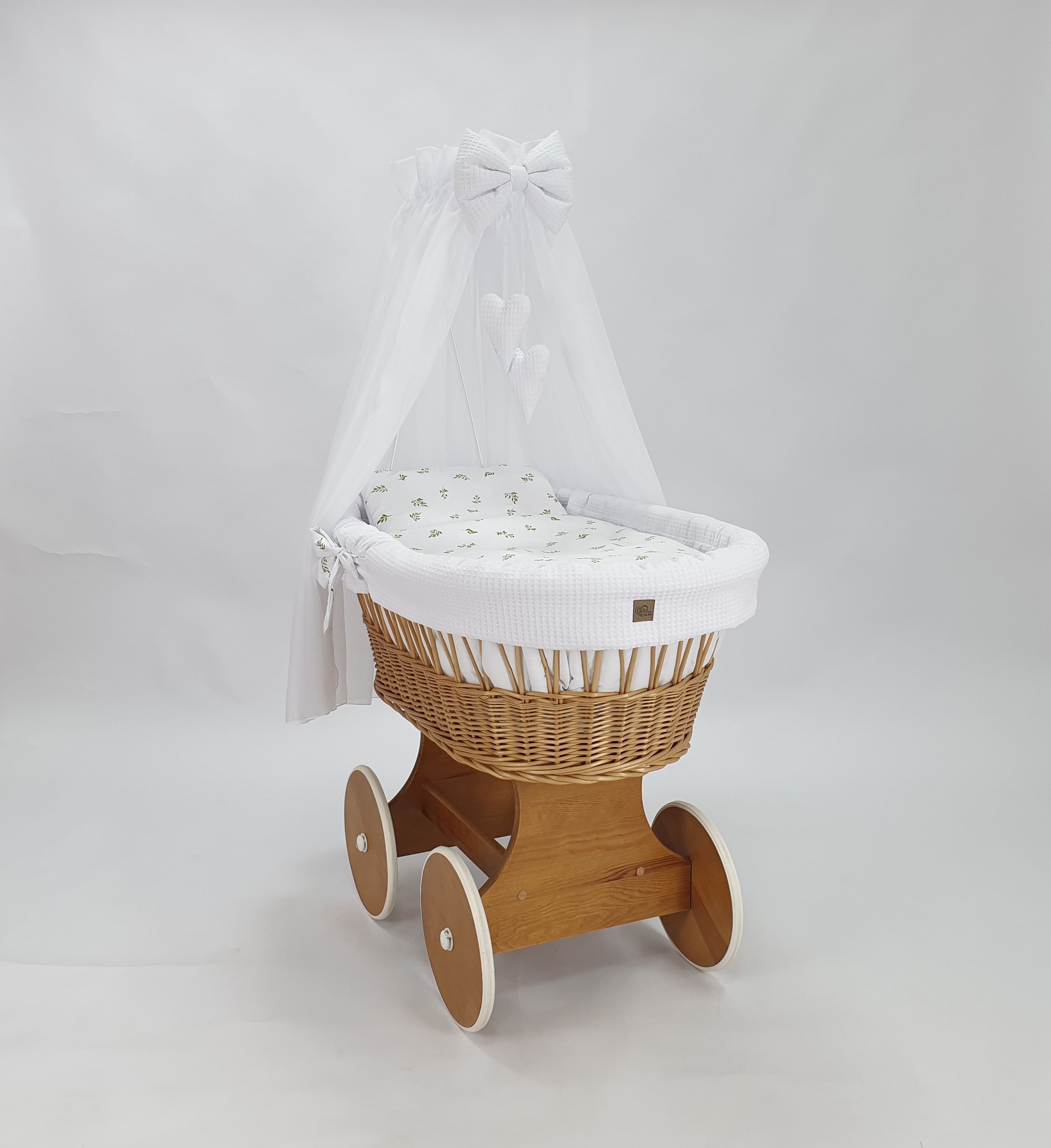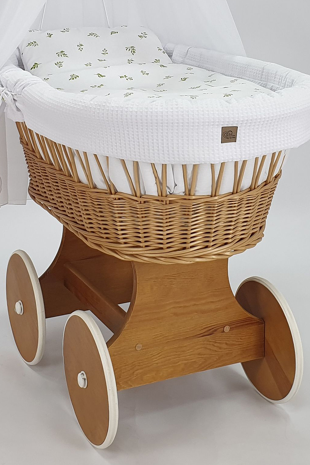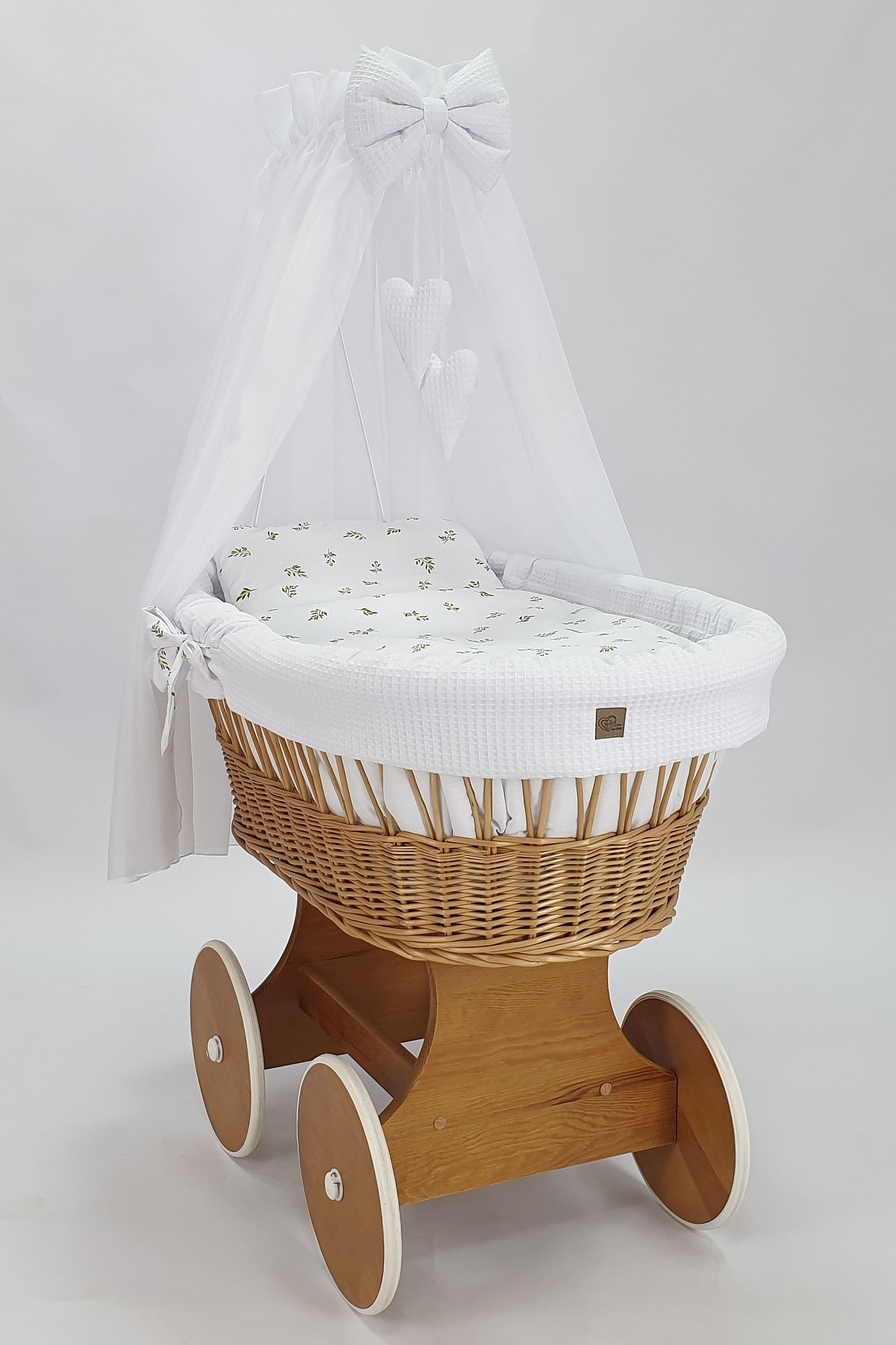 Comfort en veiligheid: Het wiegje heeft een ovale vorm, waardoor jouw baby zich beschermd en veilig voelt. De royale afmetingen van 90x55x30 cm geven voldoende ruimte om comfortabel te slapen. De zachte bedtextielset van 100% katoen met OEKO-TEX-certificaat zorgt voor een aangenaam huidcontact en een warm gevoel.