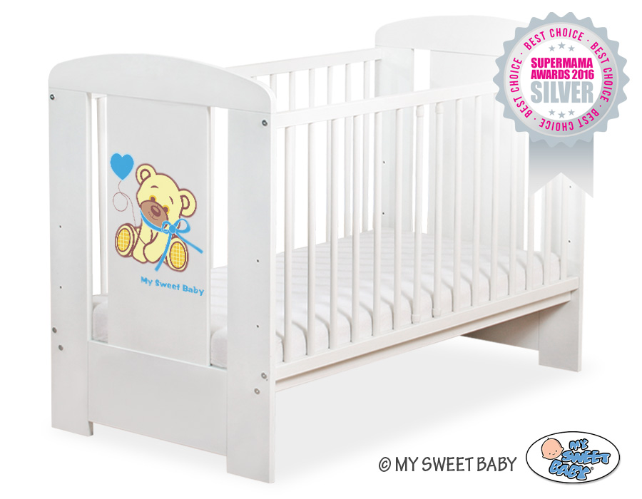 Kleinbaby.nl » Ledikanten 120x60 cm » Ledikant Collectie Bear with Bow » Babybed 120x60 cm - Tedy Bear with bow Wit Blauw Bear With Bow
