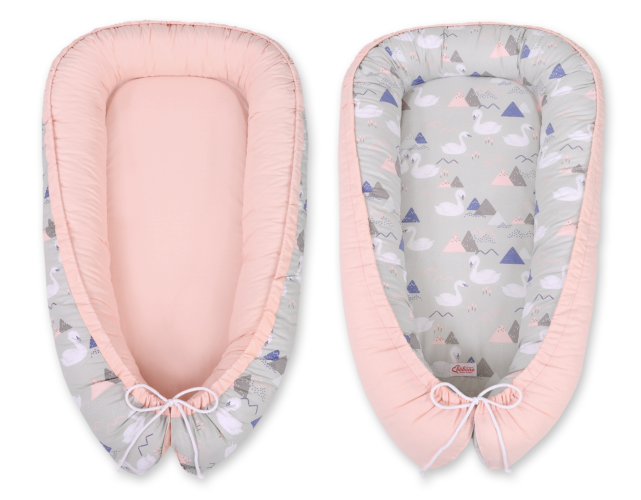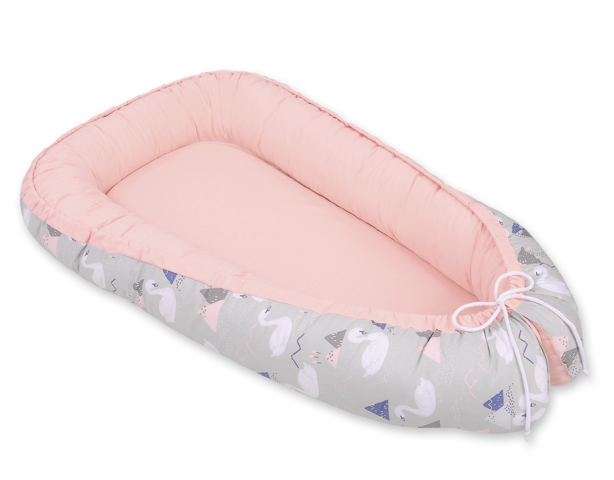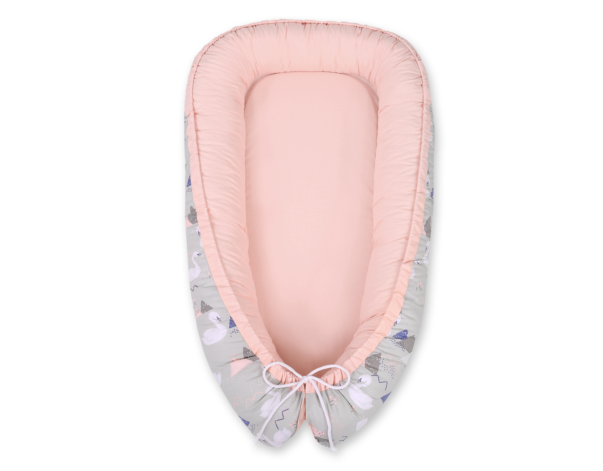 Kleinbaby.nl » Babynest » Babynestje Grijs Poederroze Zwanen