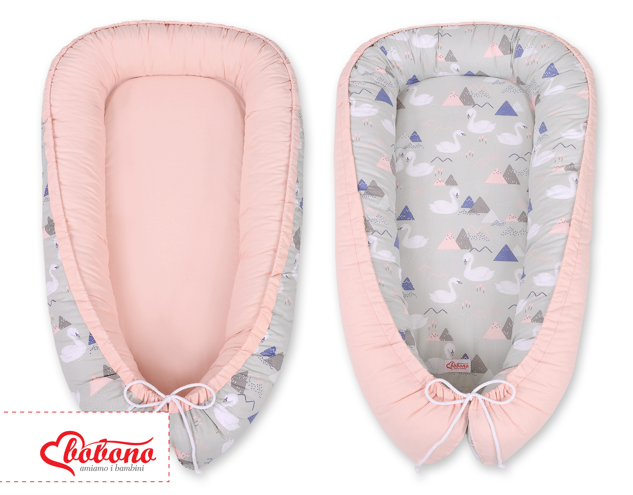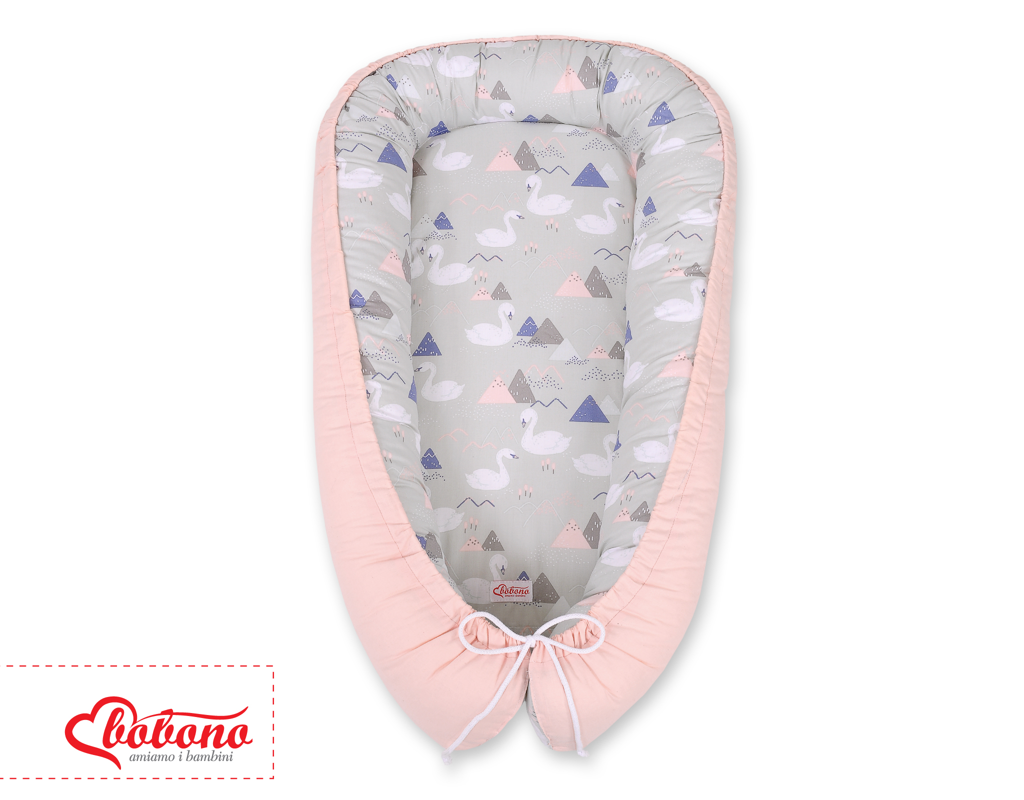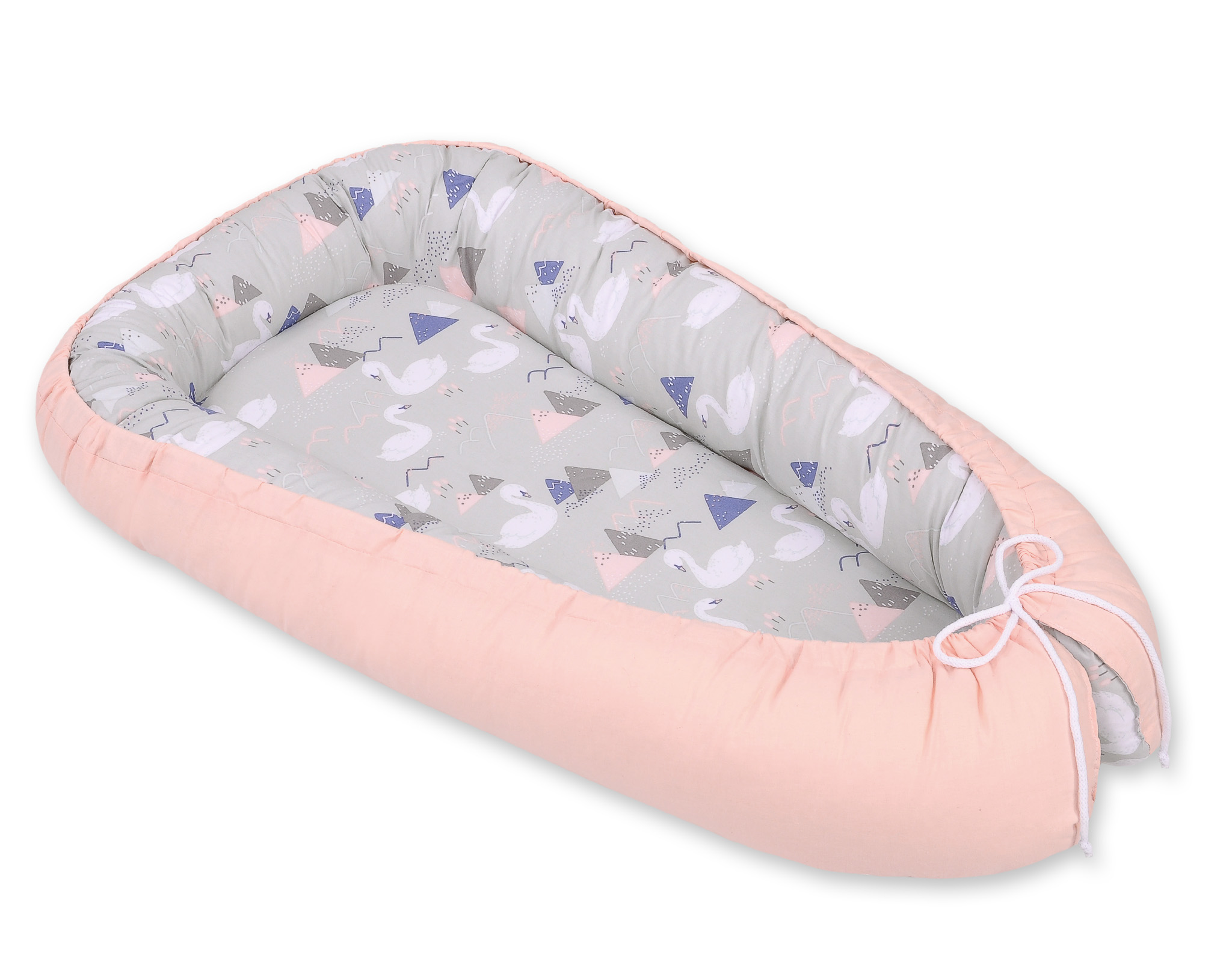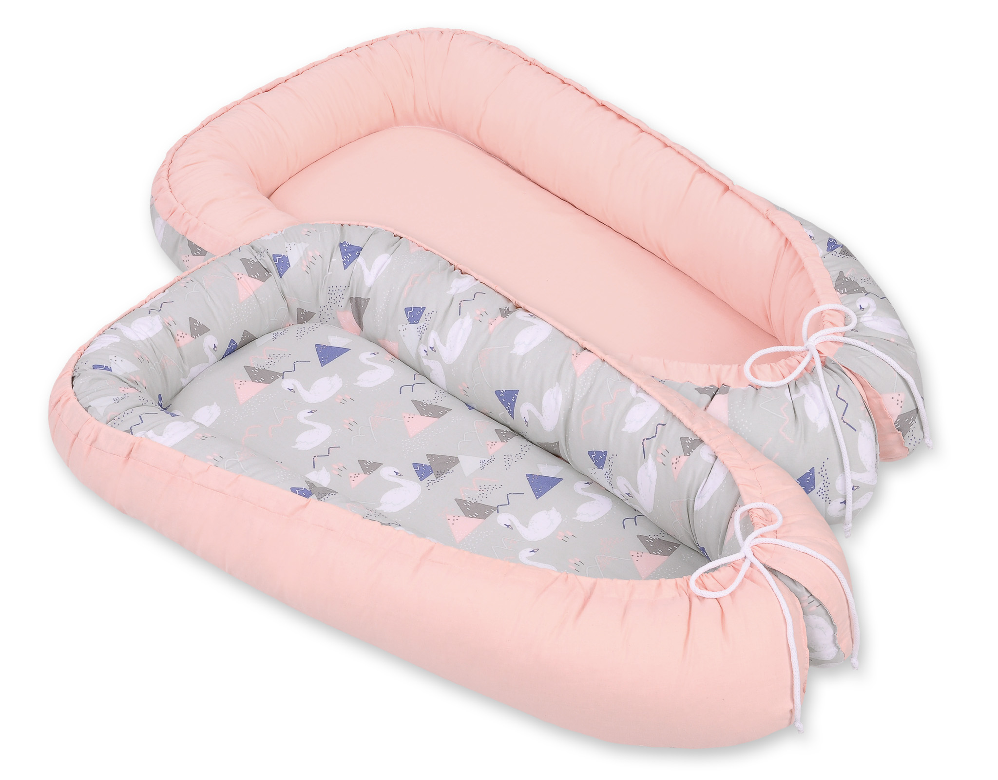 Kleinbaby.nl » Babynest » Babynestje Grijs Poederroze Zwanen
