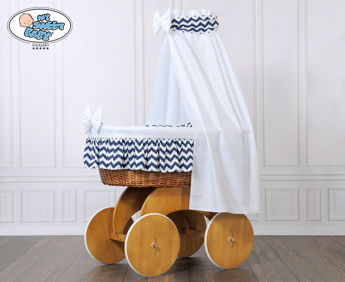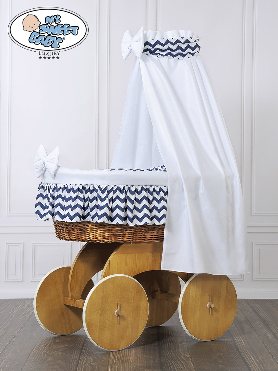 Een prachtige mand en tevens de grootste wieg op de markt, met natuurlijke kleuren van riet en hout.