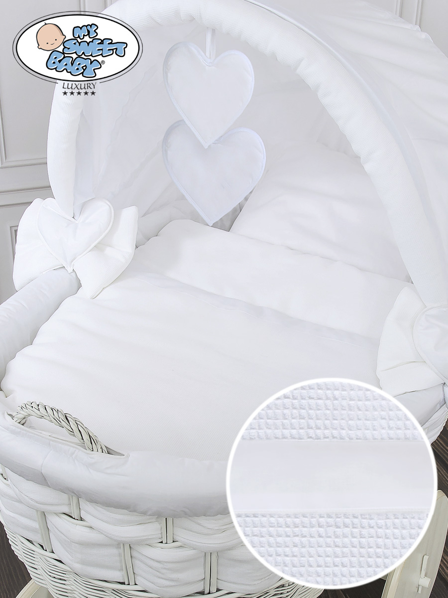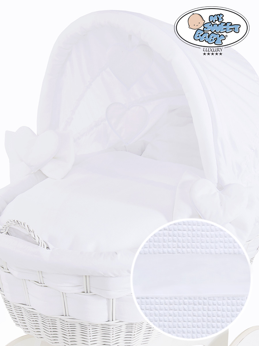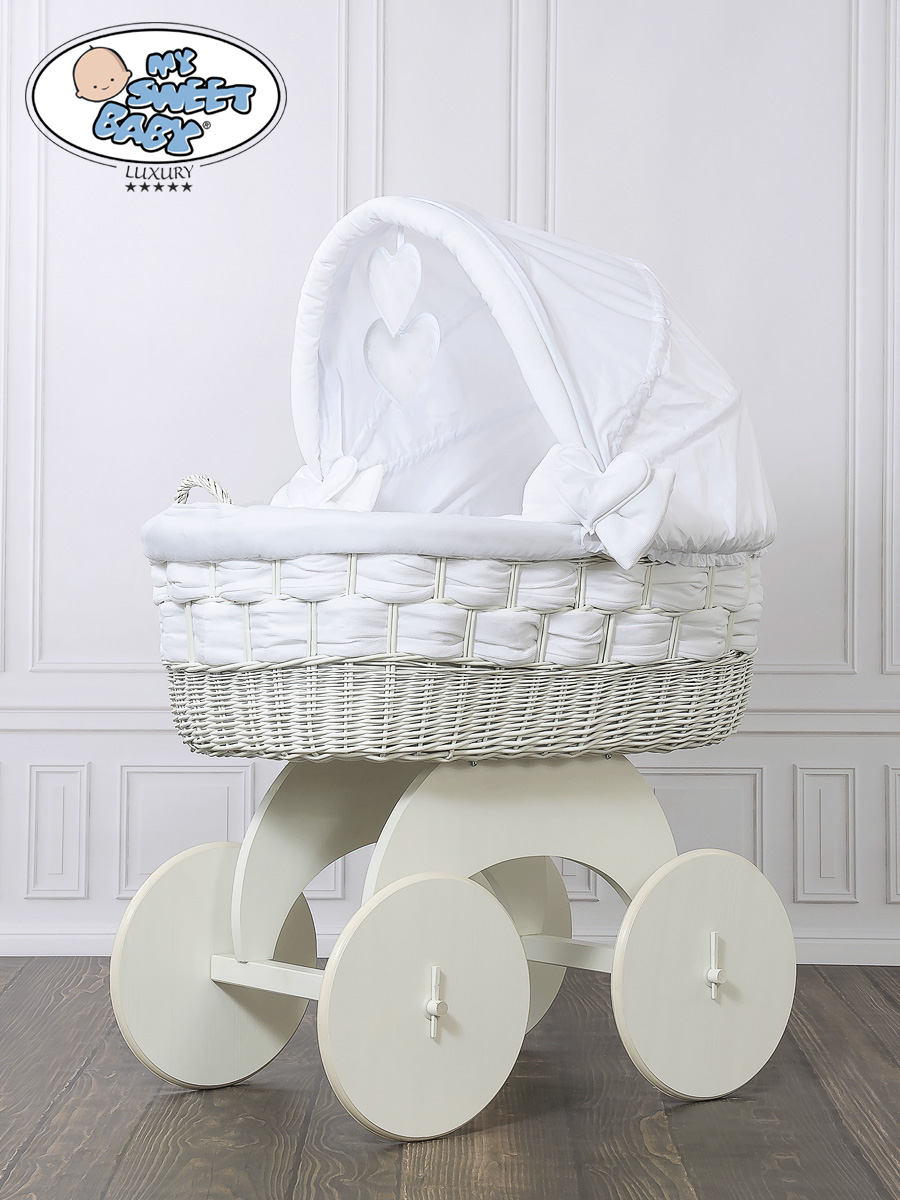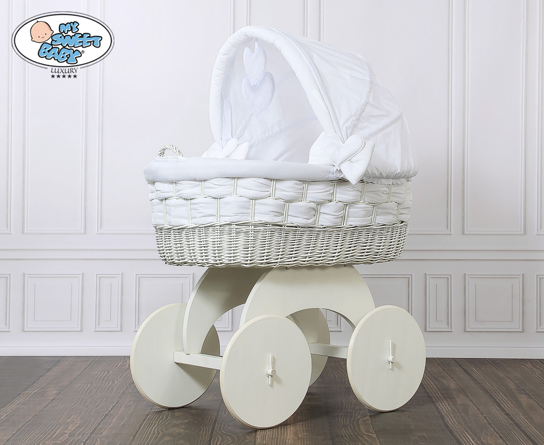 Kleinbaby.nl » Babywiege » Rieten Wieg My Sweet Baby Luxury » Rieten Wiegen met Kap » Rieten Wiegen met Kap » Babywieg op Wielen / Rieten en Houten Wieg - met Kap - Beddengoed Bianca