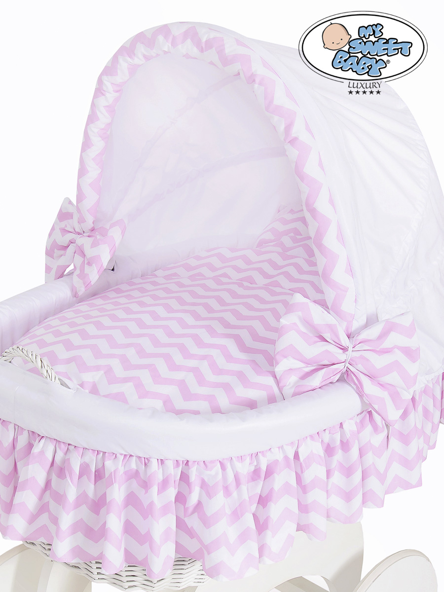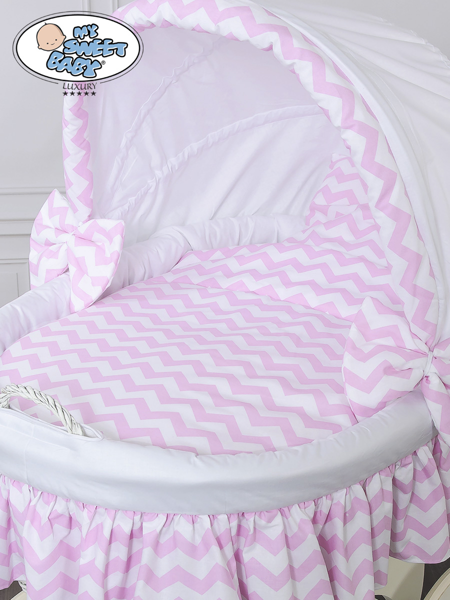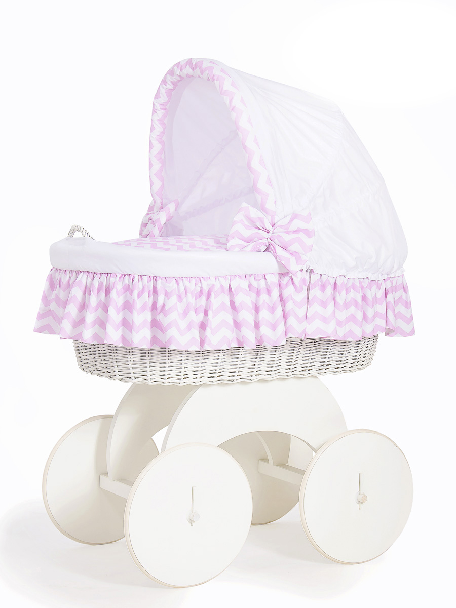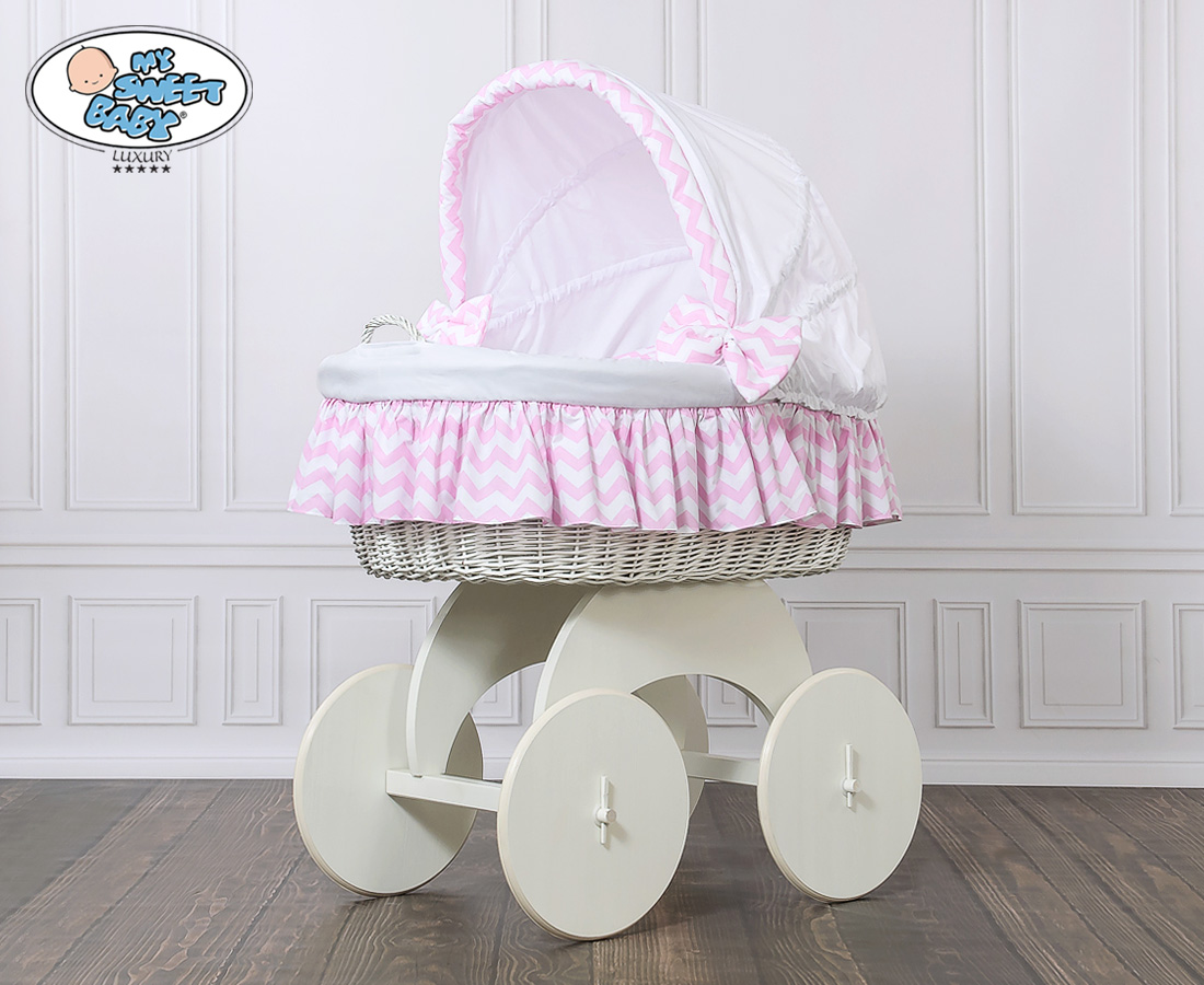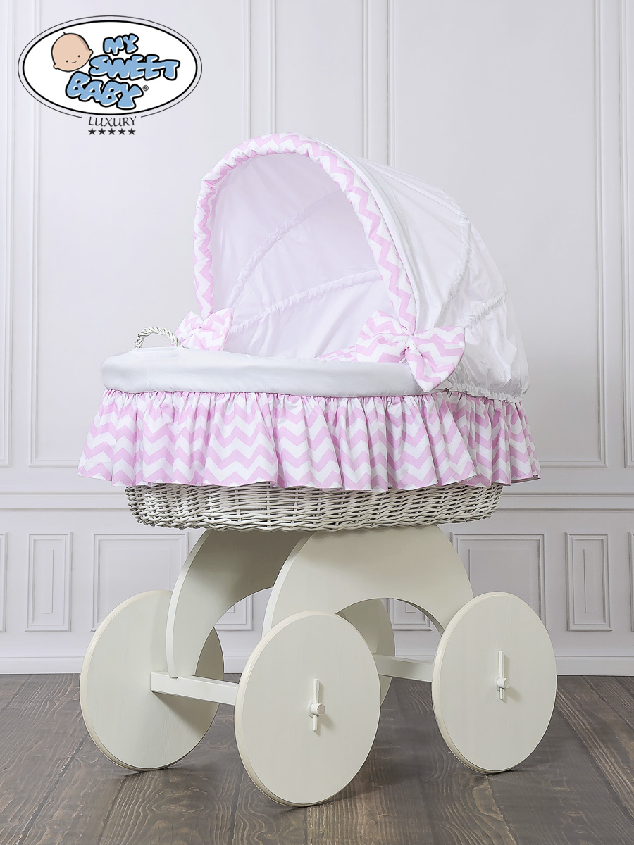 Kleinbaby.nl » Babywiege » Rieten Wieg My Sweet Baby Luxury » Rieten Wiegen met Kap » Rieten Wiegen met Kap » Babywieg op Wielen / Rieten en Houten Wieg - met Kap - Beddengoed
