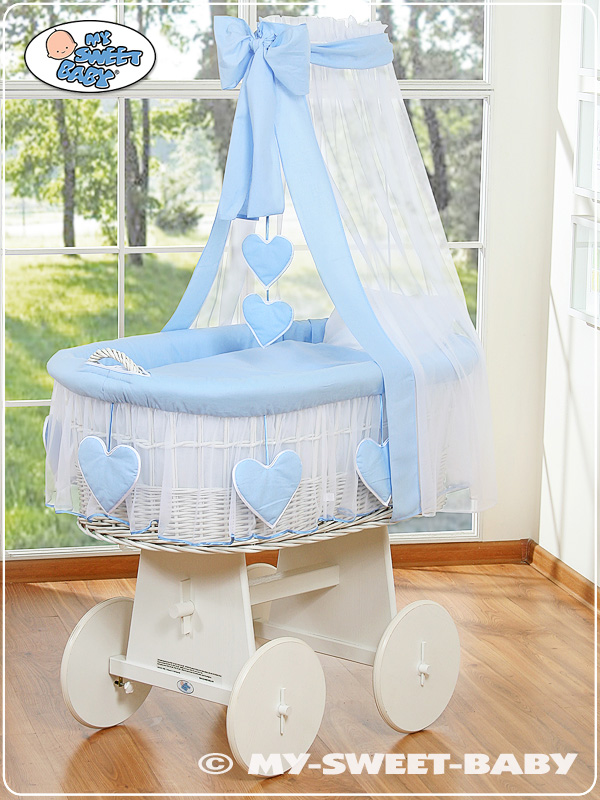 Babywieg op Wielen / Rieten Kribbe met Hemeltje Blauw Amelie