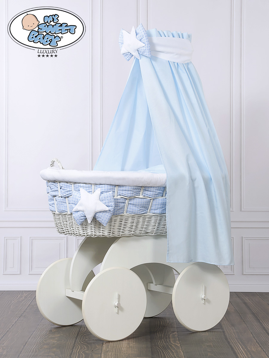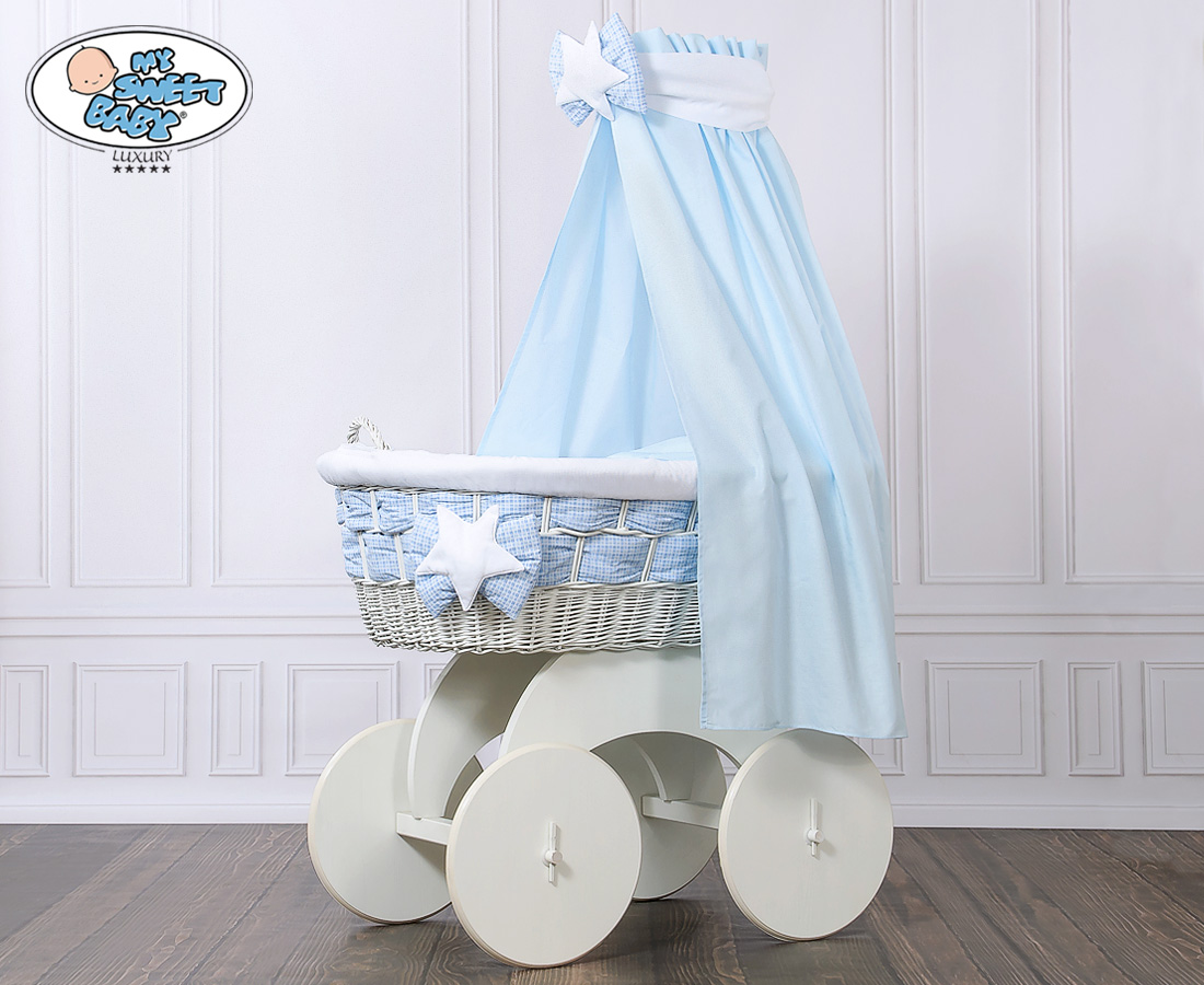 Kleinbaby.nl » Babywiege » Rieten Wieg My Sweet Baby Luxury » Rieten Wieg met Hemeltje - Grote Wielen » Rieten Wieg met Hemeltje - Grote Wielen » Babywieg op Wielen / Rieten Kribbe met Hemeltje Isabella