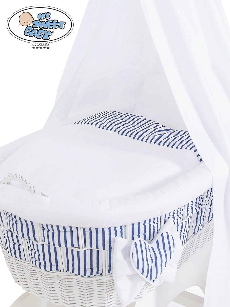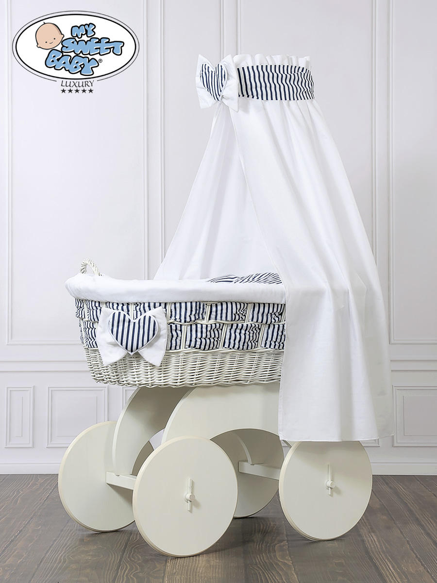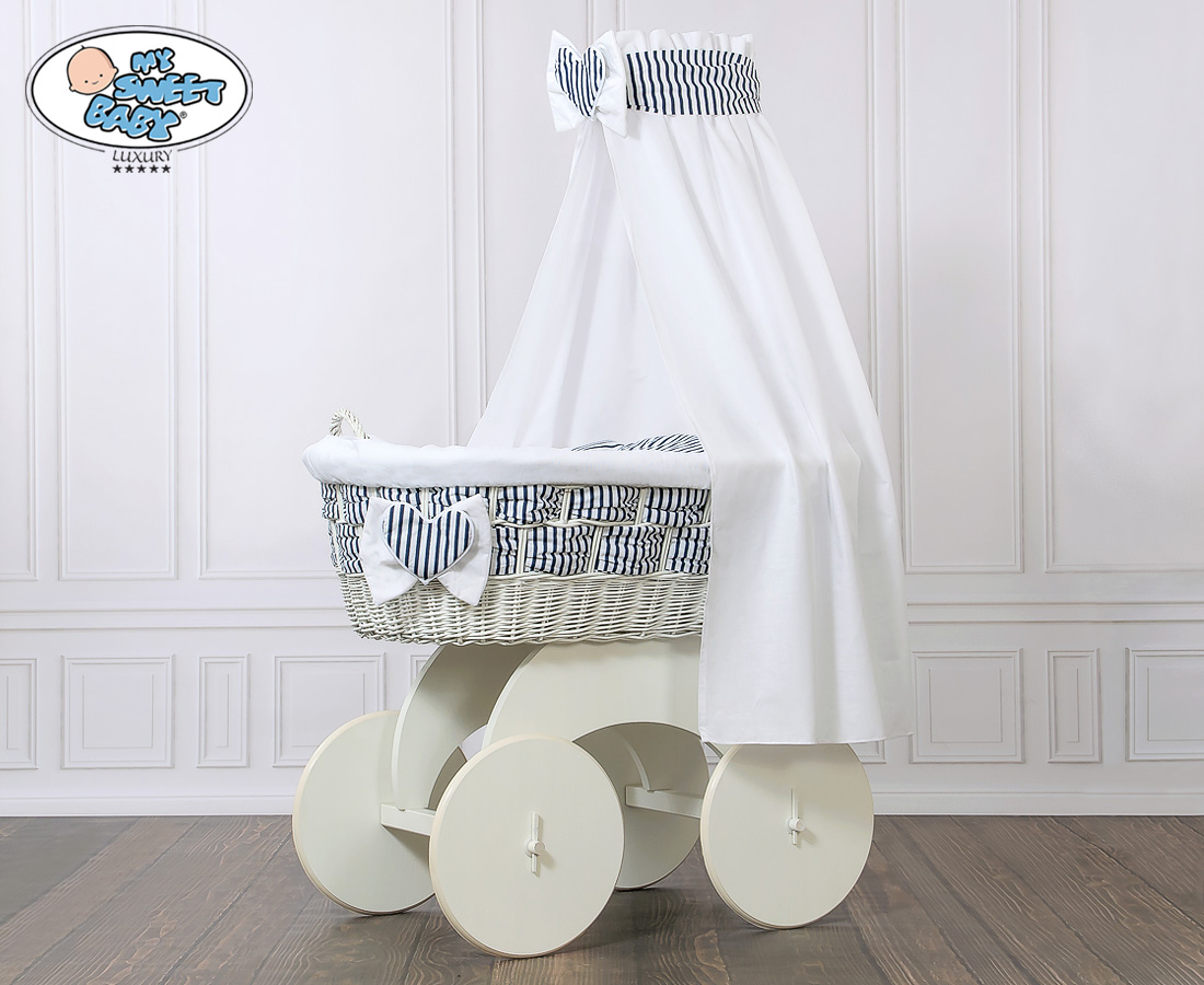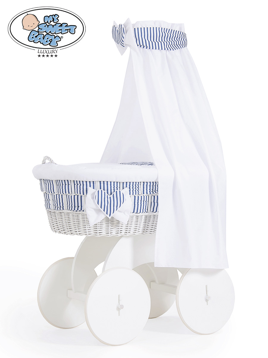Kleinbaby.nl » Babywiege » Rieten Wieg My Sweet Baby Luxury » Rieten Wieg met Hemeltje - Grote Wielen » Rieten Wieg met Hemeltje - Grote Wielen » Babywieg op Wielen / Rieten Kribbe met Hemeltje Jachthaven