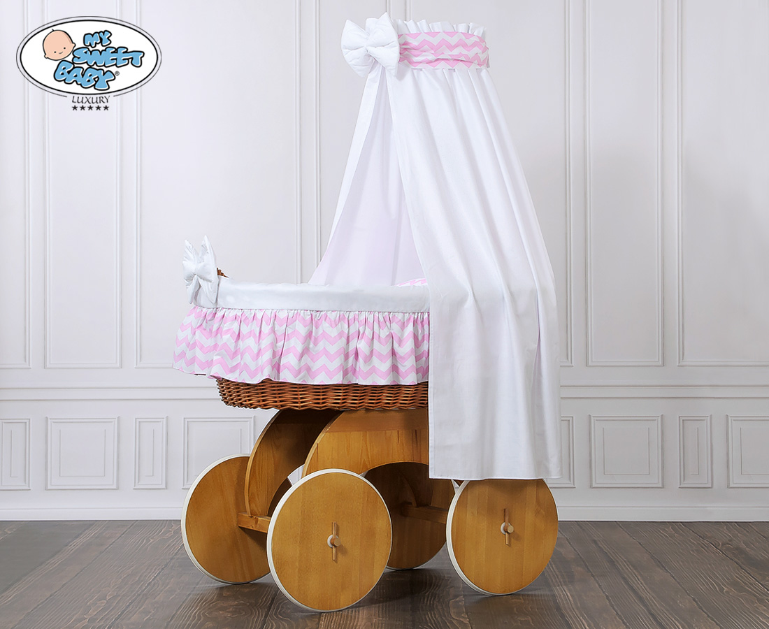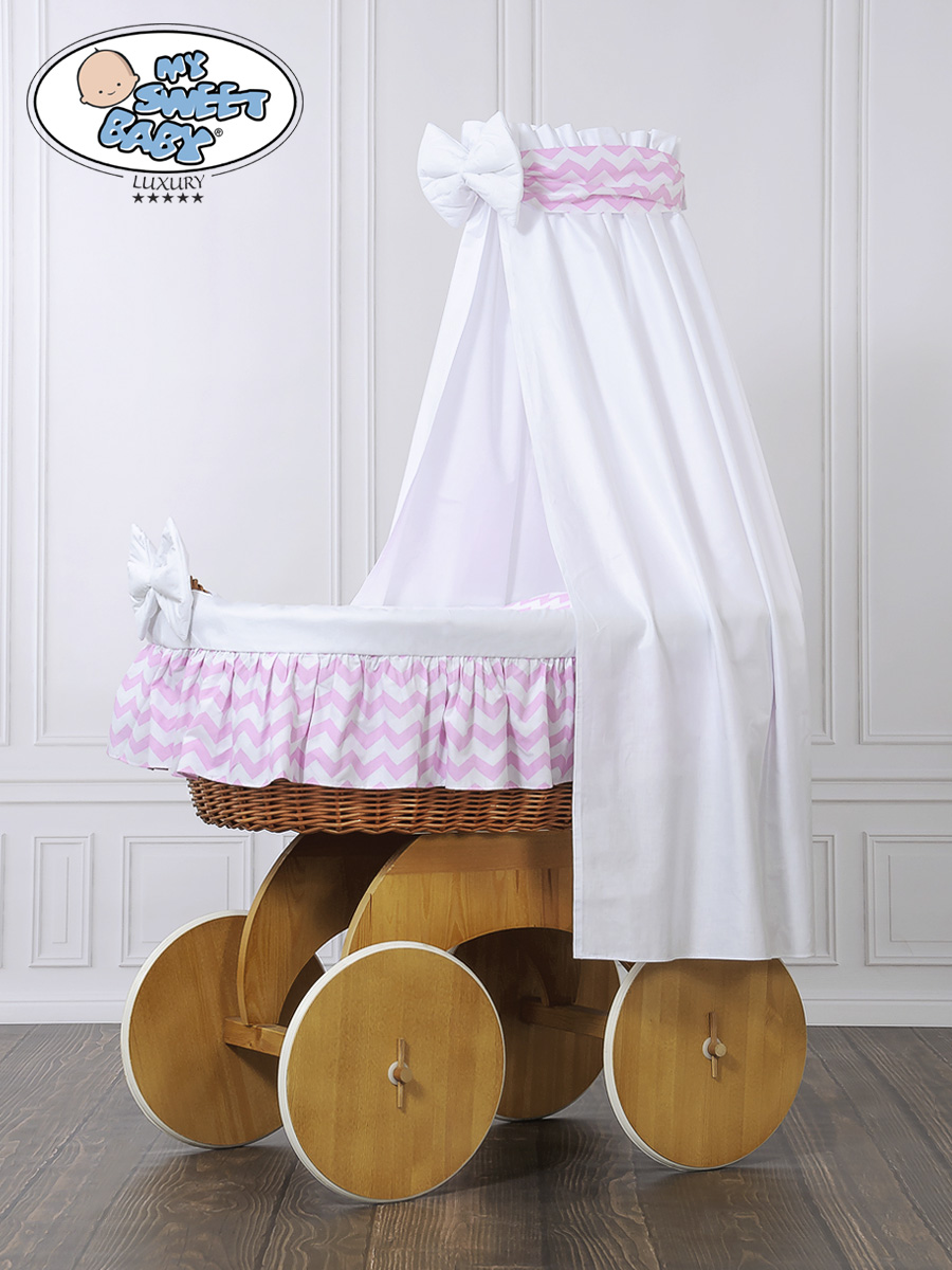 Kleinbaby.nl » Babywiege » Rieten Wieg My Sweet Baby Luxury » Rieten Wieg met Hemeltje - Grote Wielen » Rieten Wieg met Hemeltje - Grote Wielen » Babywieg op Wielen / Rieten Wieg met Hemeltje Hanna