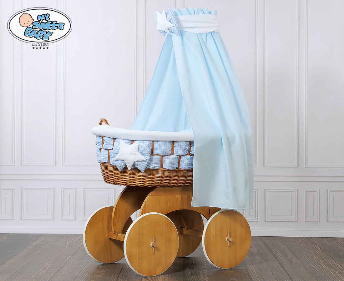Kleinbaby.nl » Babywiege » Rieten Wieg My Sweet Baby Luxury » Rieten Wieg met Hemeltje - Grote Wielen » Rieten Wieg met Hemeltje - Grote Wielen » Babywieg op Wielen / Rieten Wieg met Hemeltje Isabella
