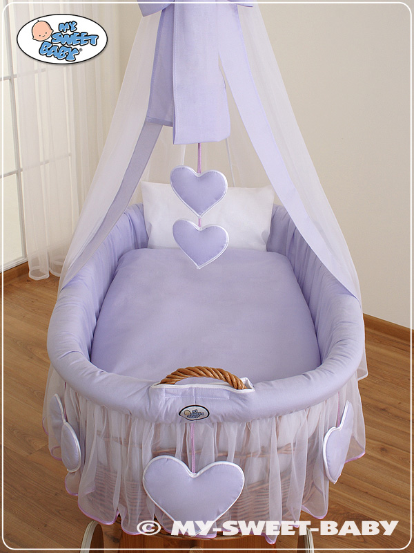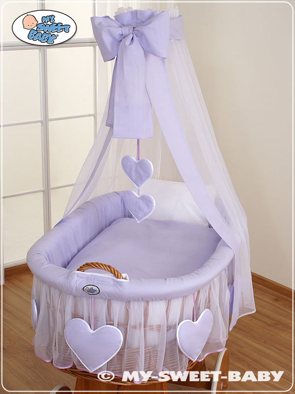 Kleinbaby.nl » Babywiege » Babywiegje met hemeltje - Grote Wielen » Wiegen » Babywieg op Wielen / Rieten Wieg met Hemeltje Purper Amelie