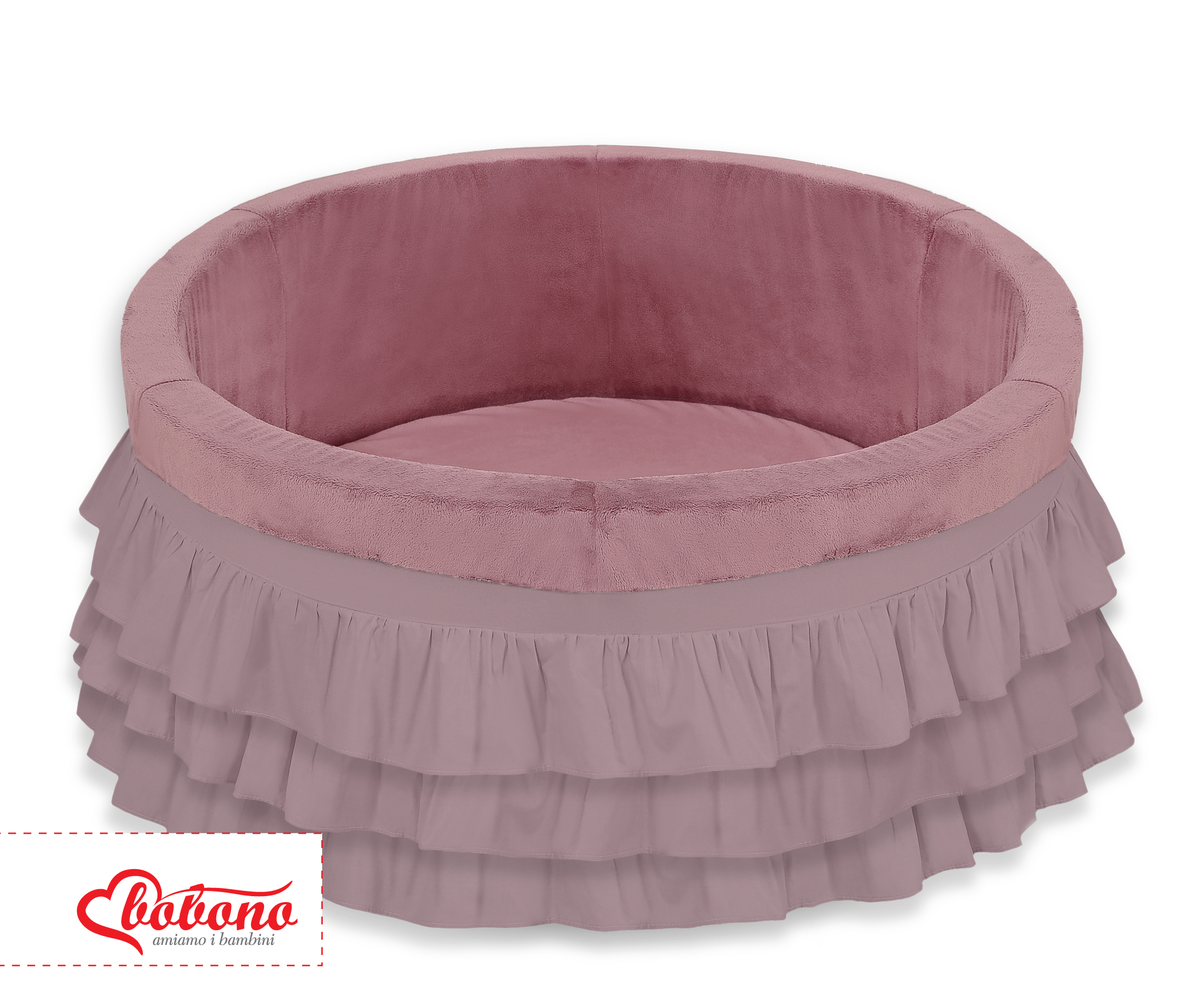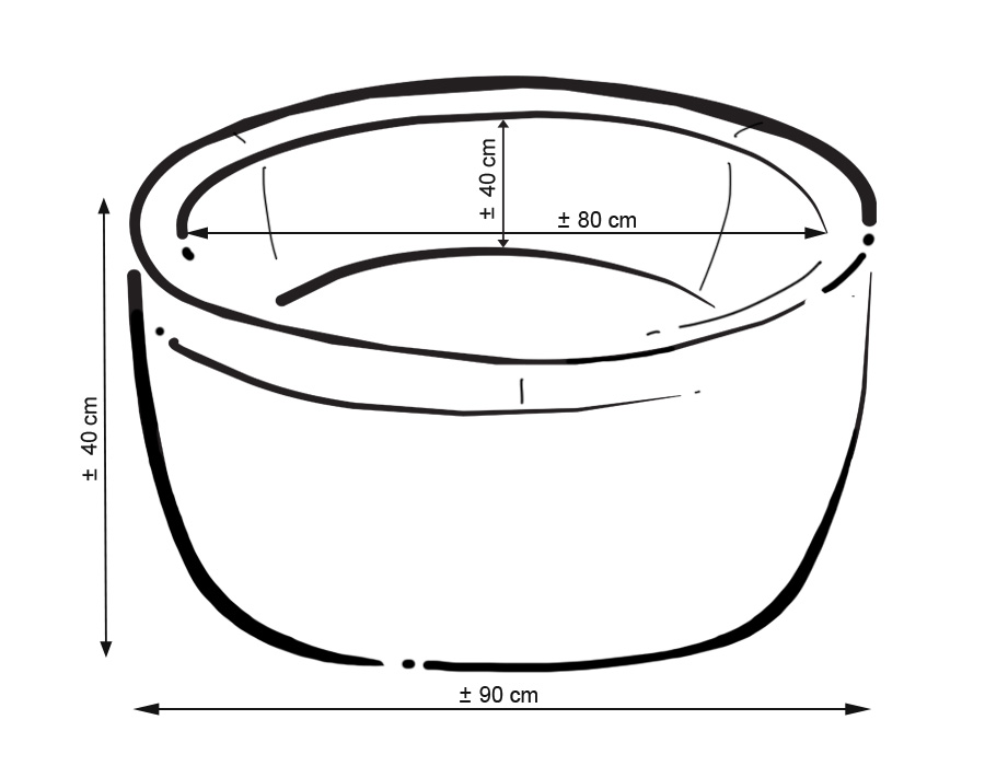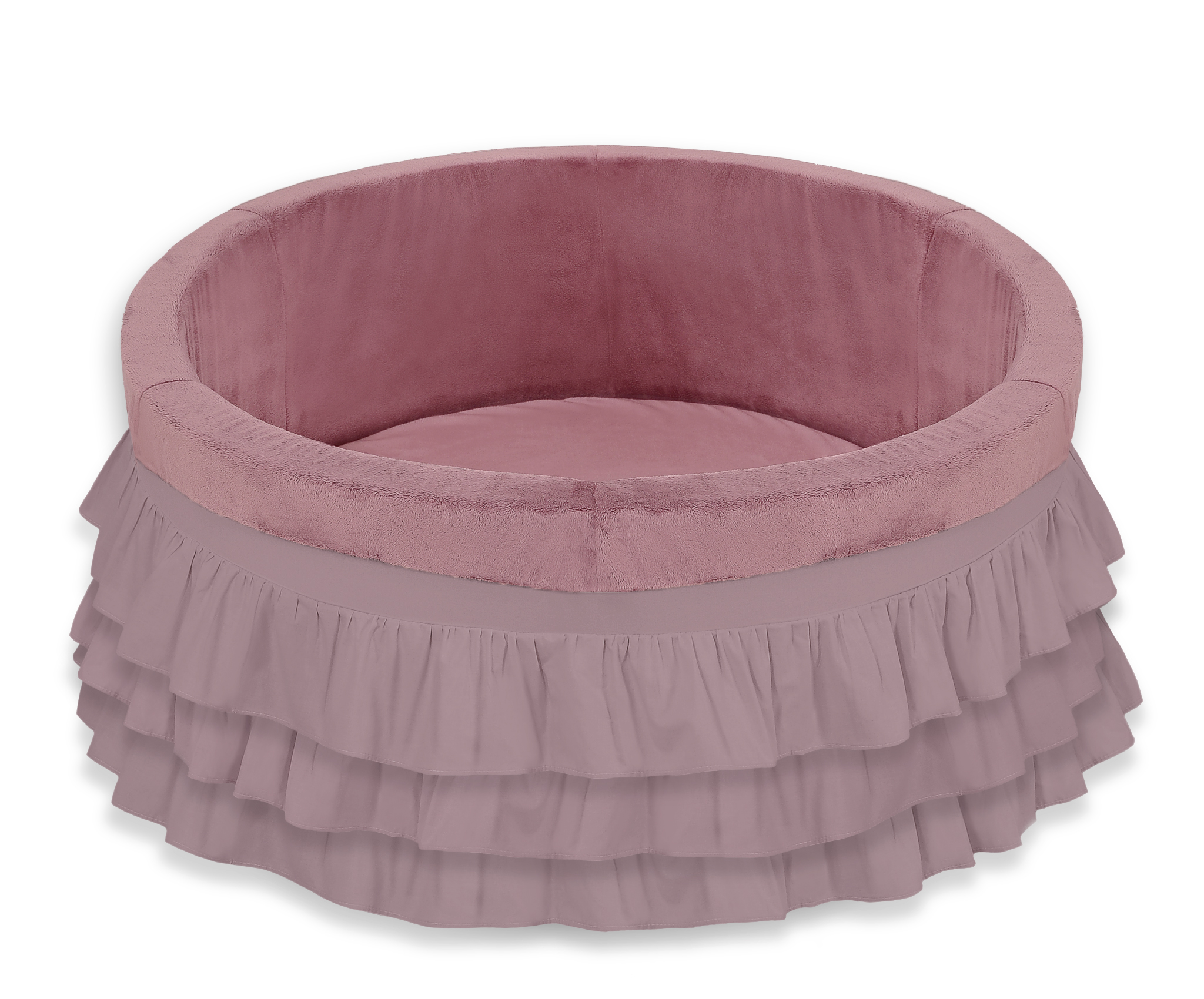 De bak is rond, met een diameter van 90 cm. De hoogte van de rand is 40 cm. Gemaakt van zacht schuim. Afneembare hoes met ritssluiting gemaakt van 100% katoen en zachte minky fleece.