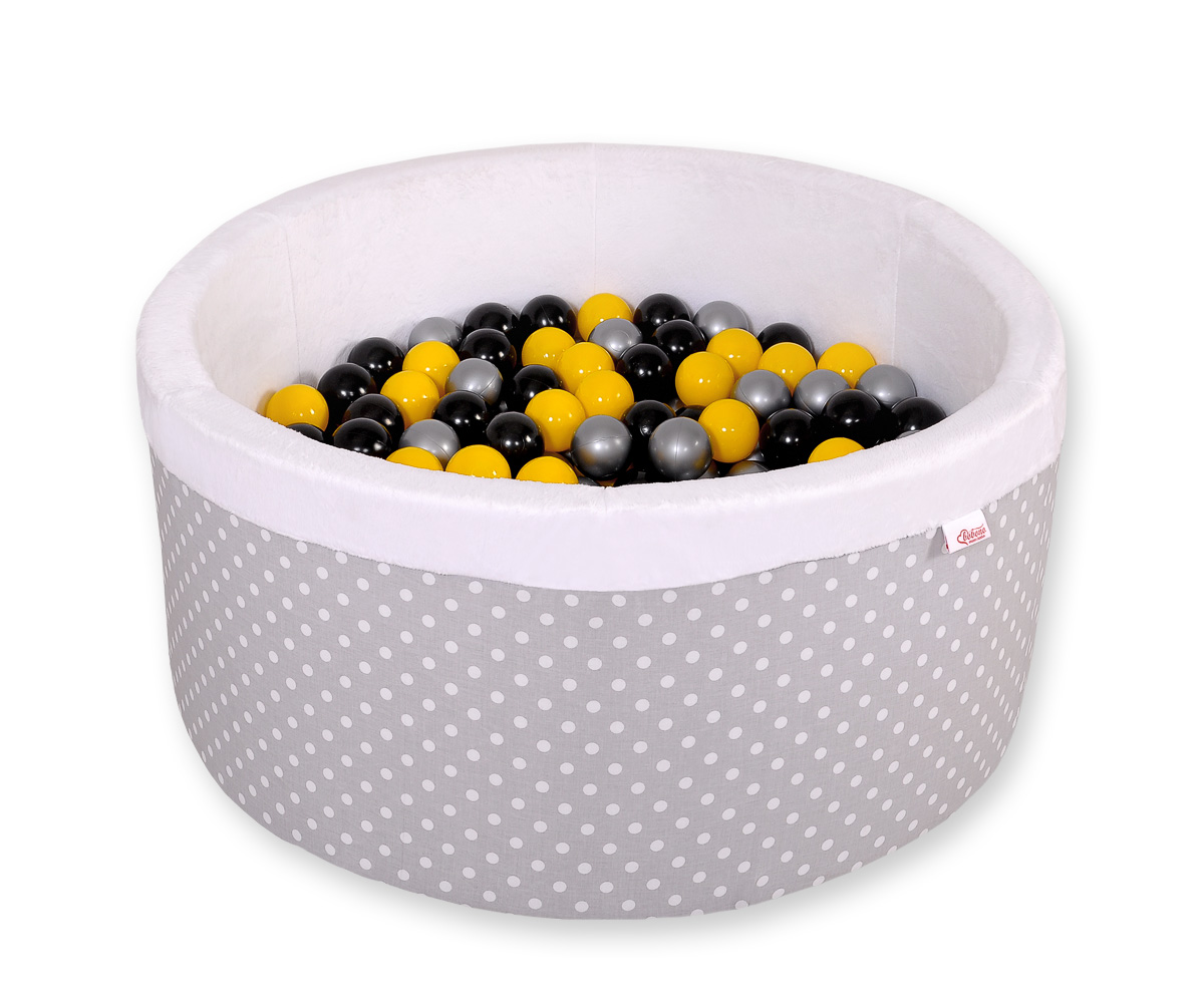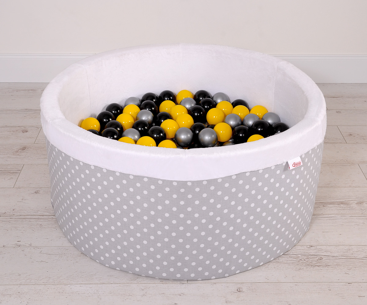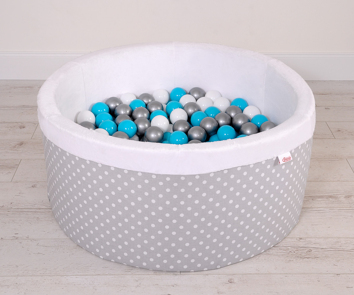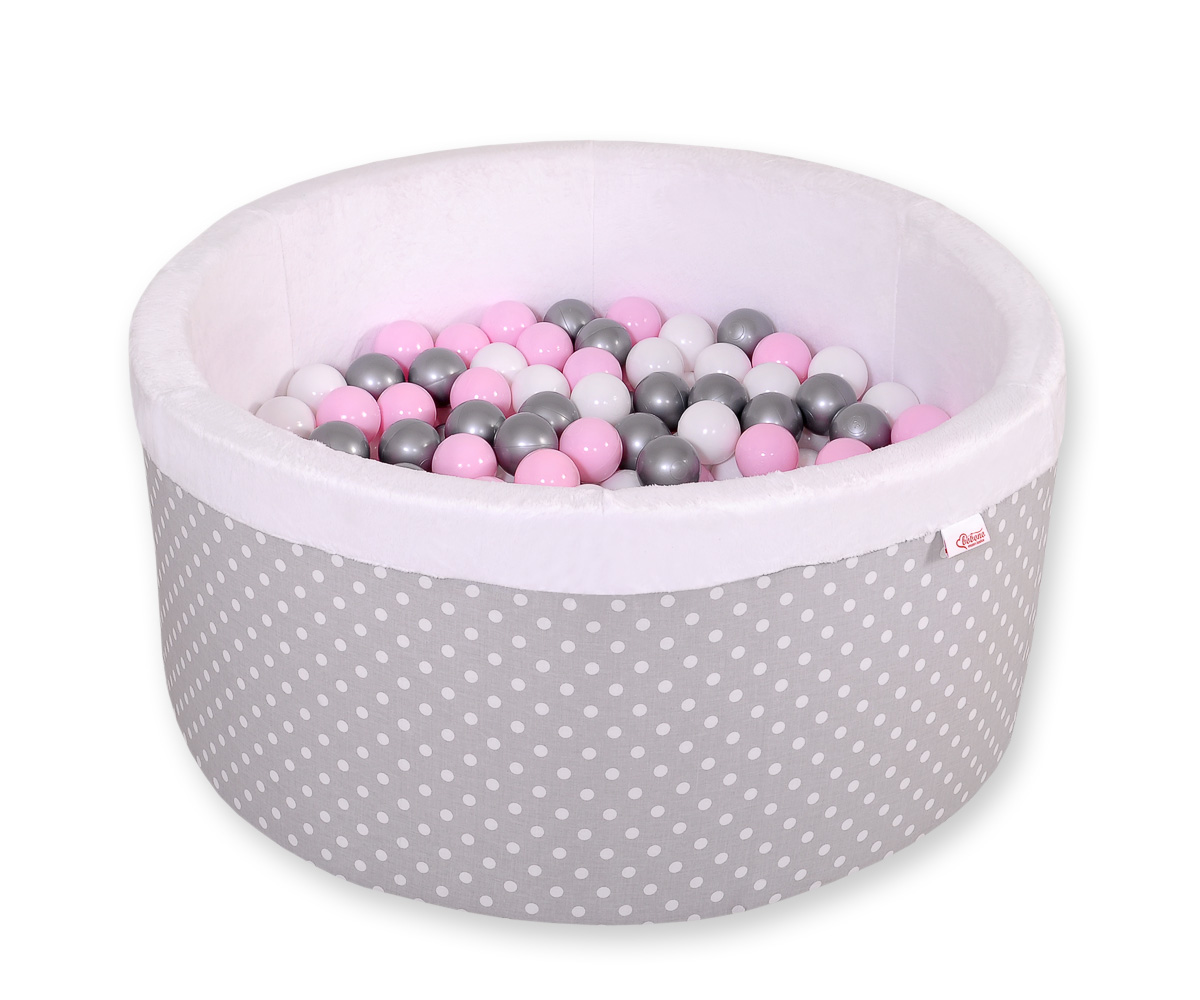 Kleinbaby.nl » Speelgoed Knuffels » Ballenbakken » Ballenbak met ballen (eigen kleurenmix) » Ballenbak met 200 Ballen Grijs Polkaprikker