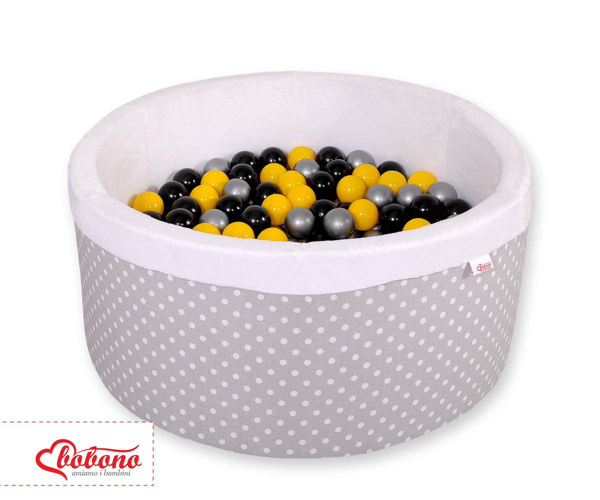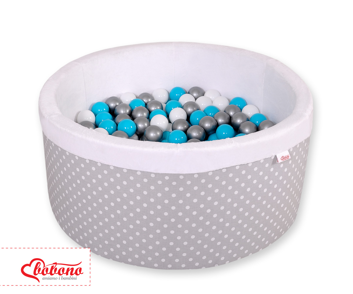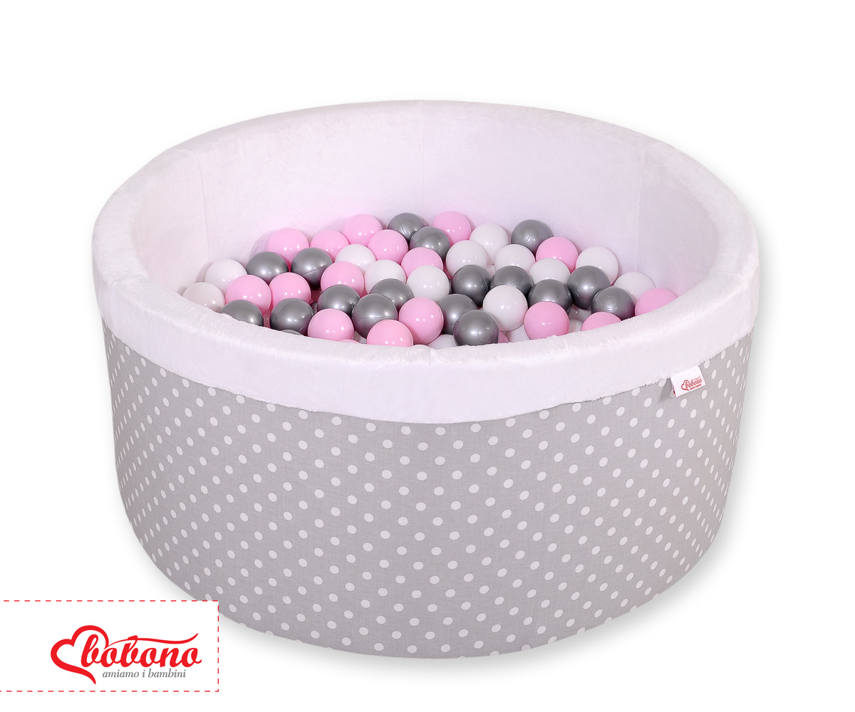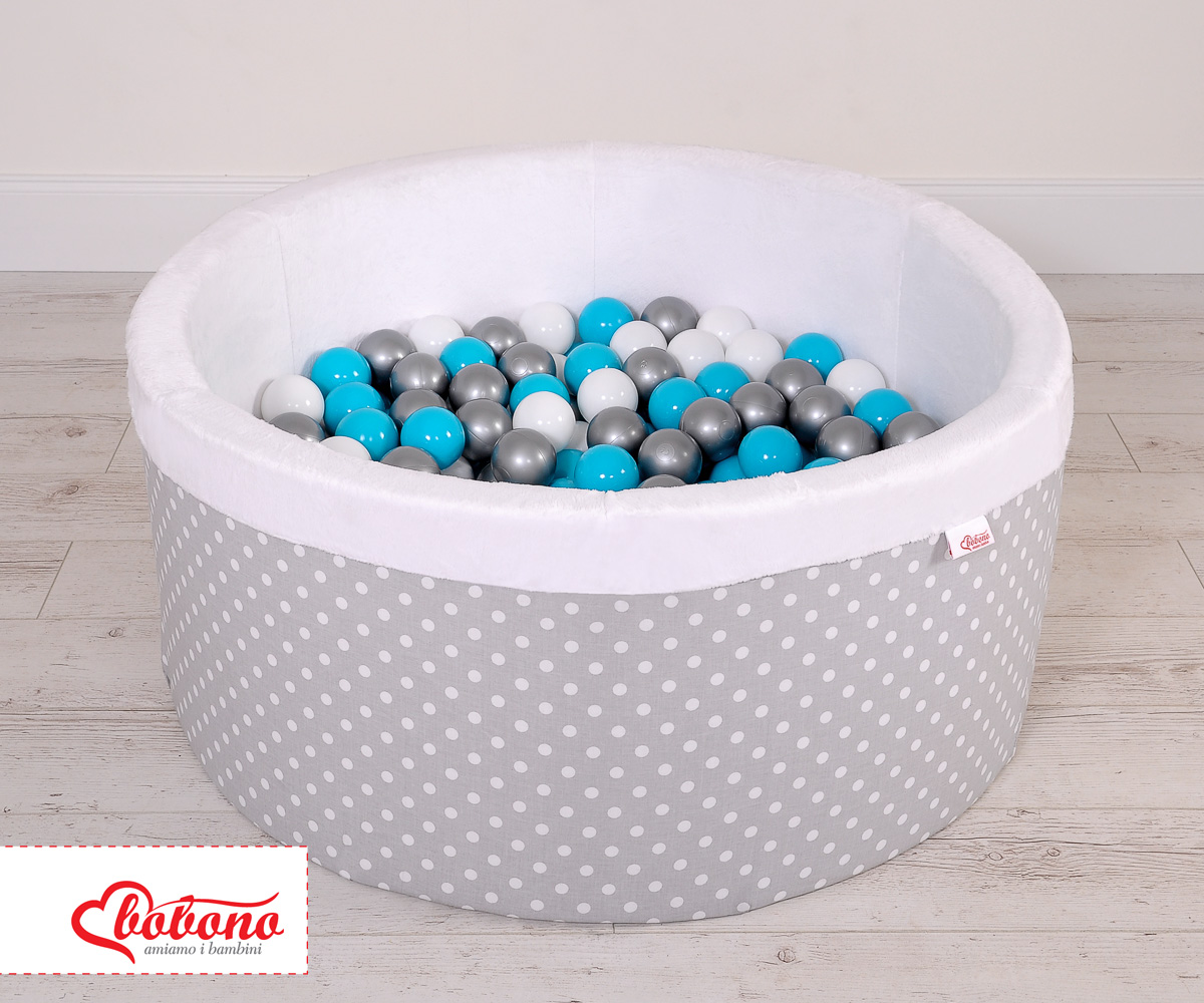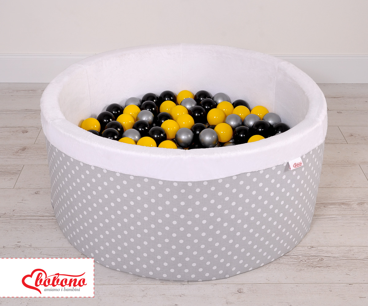 Kleinbaby.nl » Speelgoed Knuffels » Ballenbakken » Ballenbak met ballen (eigen kleurenmix) » Ballenbak met 200 Ballen Grijs Polkaprikker