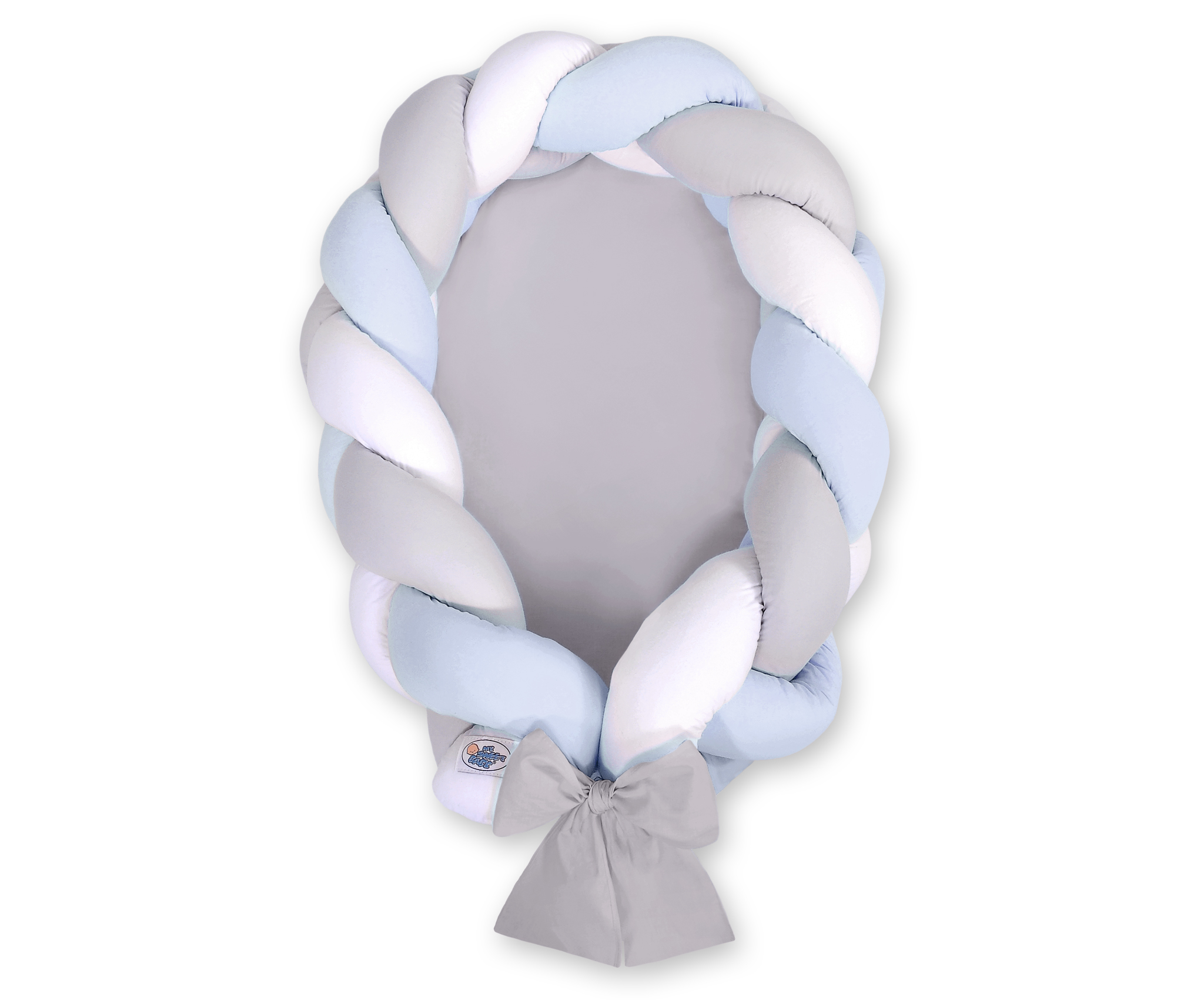 Bedbumper & Babynest Gevlochten 2 in 1 Wit Grijs BlauwBedbumper & Babynest Gevlochten 2 in 1 Wit Grijs Blauw