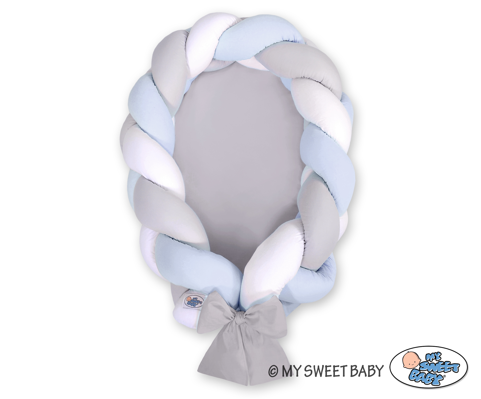 Kleinbaby.nl » Gevlochten Collectie » Gevlochten Babynest 2 in 1 » Bedbumper & Babynest Gevlochten 2 in 1 Wit Grijs Blauw