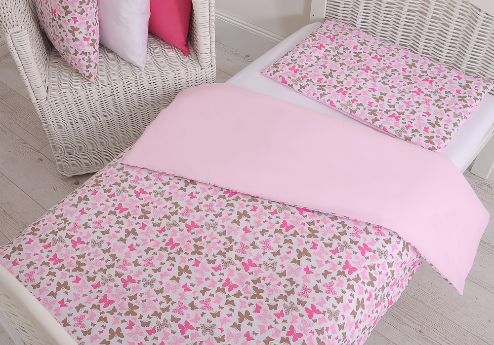 Kleinbaby.nl » Beddengoed voor Ledikant » Beddengoed voor JUNIOR » Beddengoed 140x200 cm JUNIOR » Beddengoed 2 dele 140x200 Junior Roze Vlinders