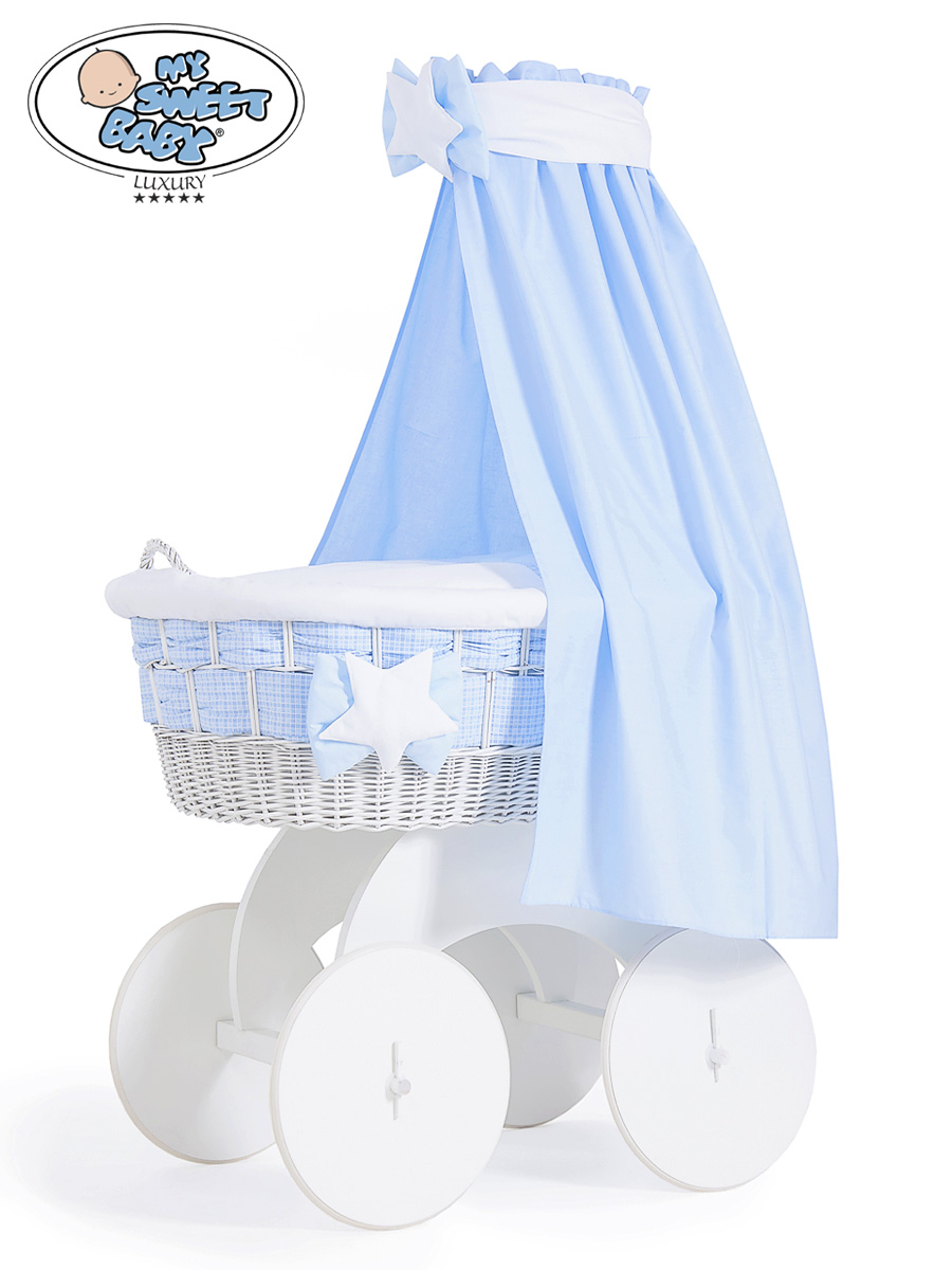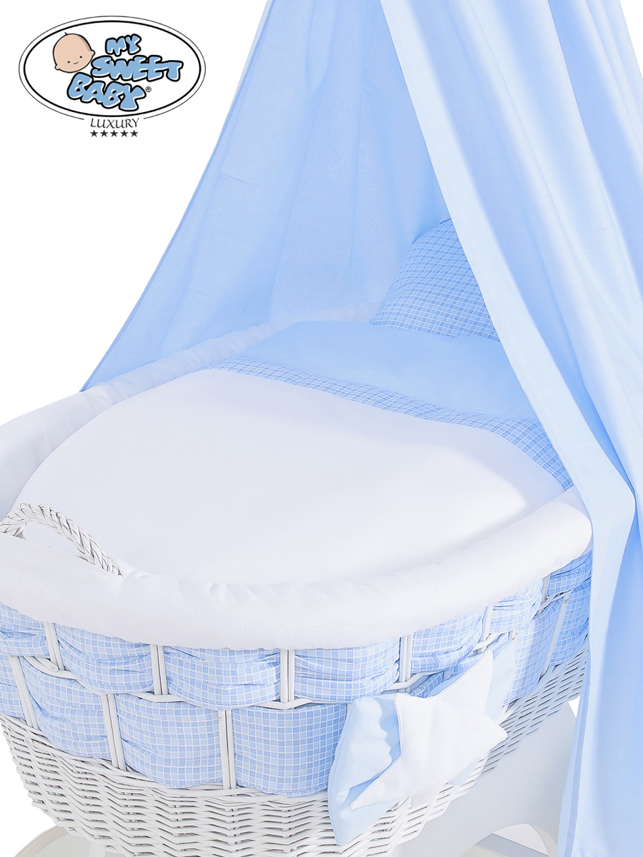 Kleinbaby.nl » Babywiege » Rieten Wieg My Sweet Baby Luxury » Rieten Wieg met Hemeltje - Grote Wielen » Extra Hoezenset 4 st » Beddengoed - 4 Delen voor Babymand / Rieten Babybed Isabella