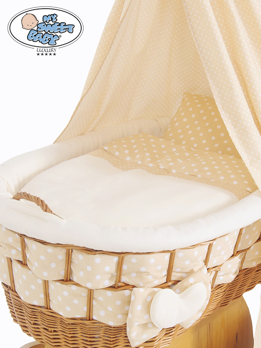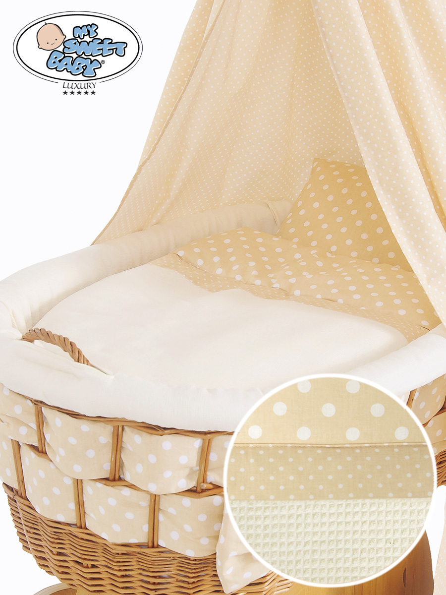 Kleinbaby.nl » Babywiege » Rieten Wieg My Sweet Baby Luxury » Rieten Wieg met Hemeltje - Grote Wielen » Extra Hoezenset 4 st » Beddengoed - 4 Delen voor Babymand / Rieten Wieg Isabella