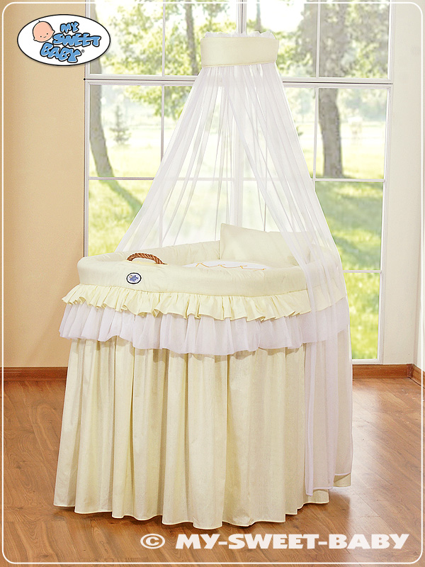 Kleinbaby.nl » Babywiege » Babywiegje met hemeltje kleine wielen » Beddengoed met Hemeltje voor Baby wiegje » Beddengoed - 4 Delen voor Babymand / Rieten Wieg