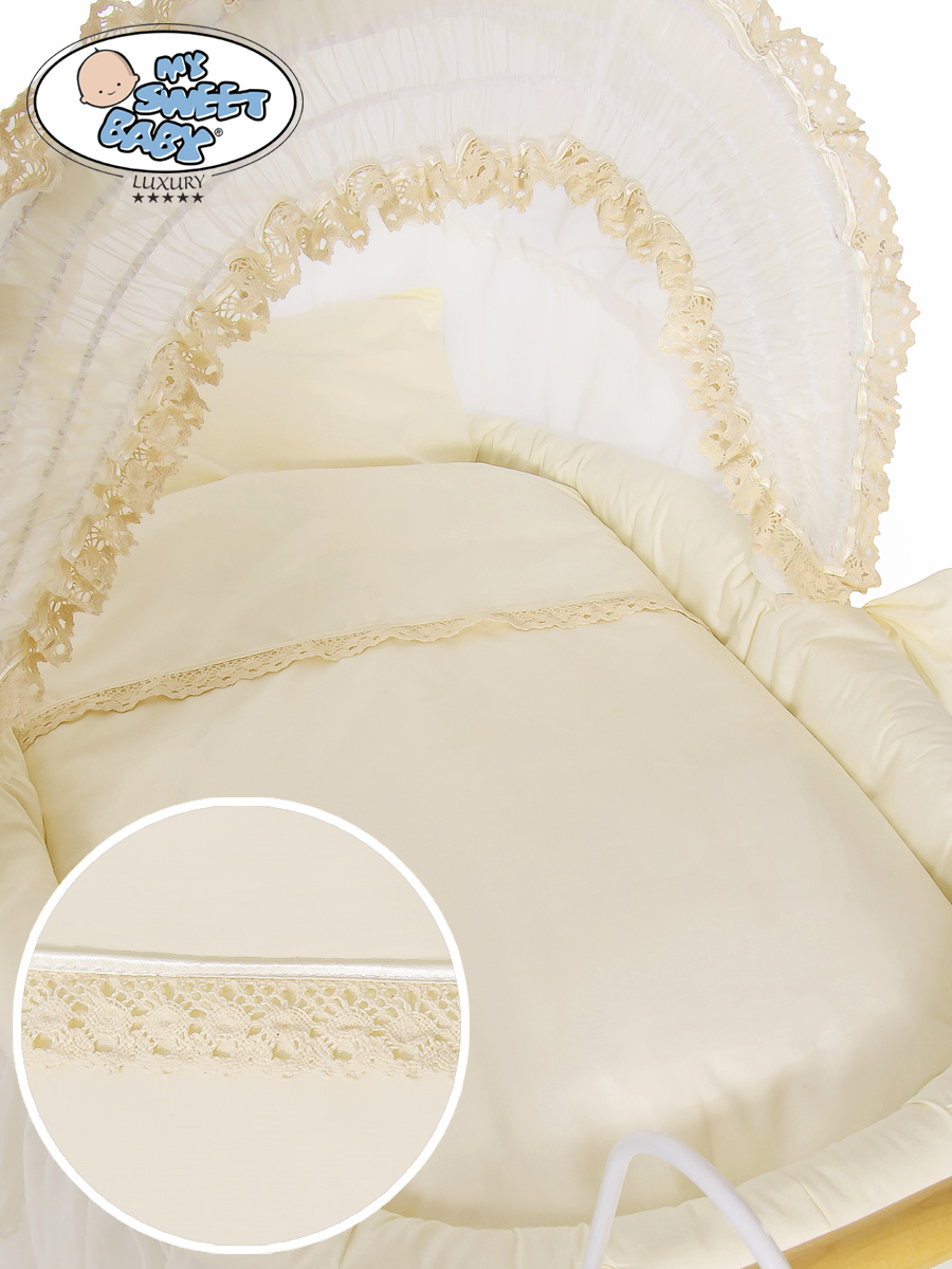 Kleinbaby.nl » Babywiege » Brocante babywiegje » Beddengoed voor Baby Wiegje Retro » Beddengoed - Hoezen voor Rieten Brocante Babywieg Elisa