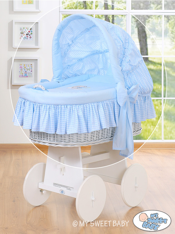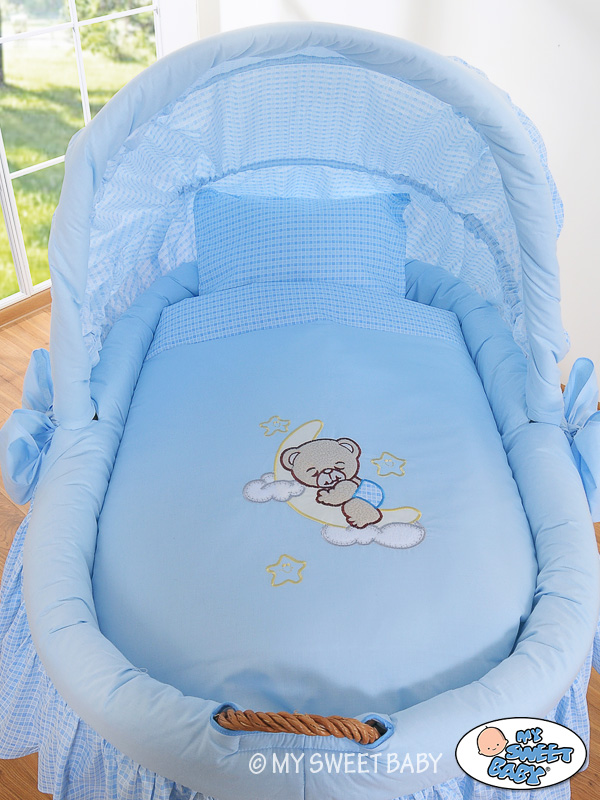 Kleinbaby.nl » Babywiege » Wiegje met kap » Beddengoed - Hoezen voor Rieten Wieg » Beddengoed - Hoezen voor Rieten Ledikant Blauw