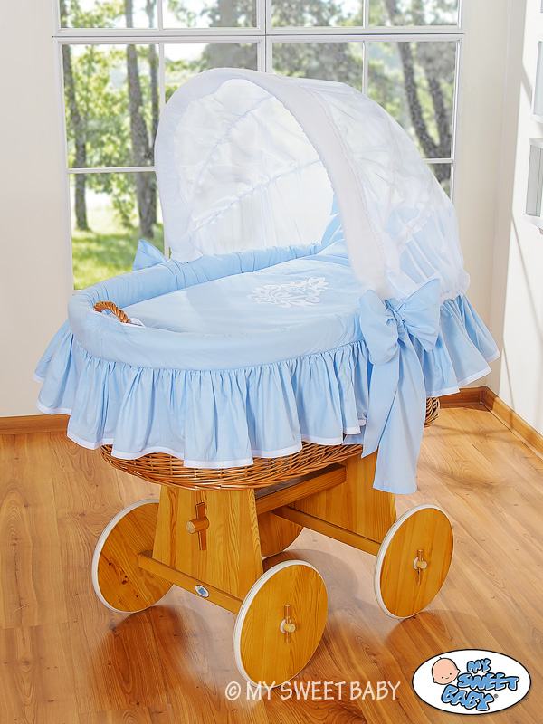 Kleinbaby.nl » Babywiege » Wiegje met kap » Beddengoed - Hoezen voor Rieten Wieg » Beddengoed - Hoezen voor Rieten Ledikant Blauw