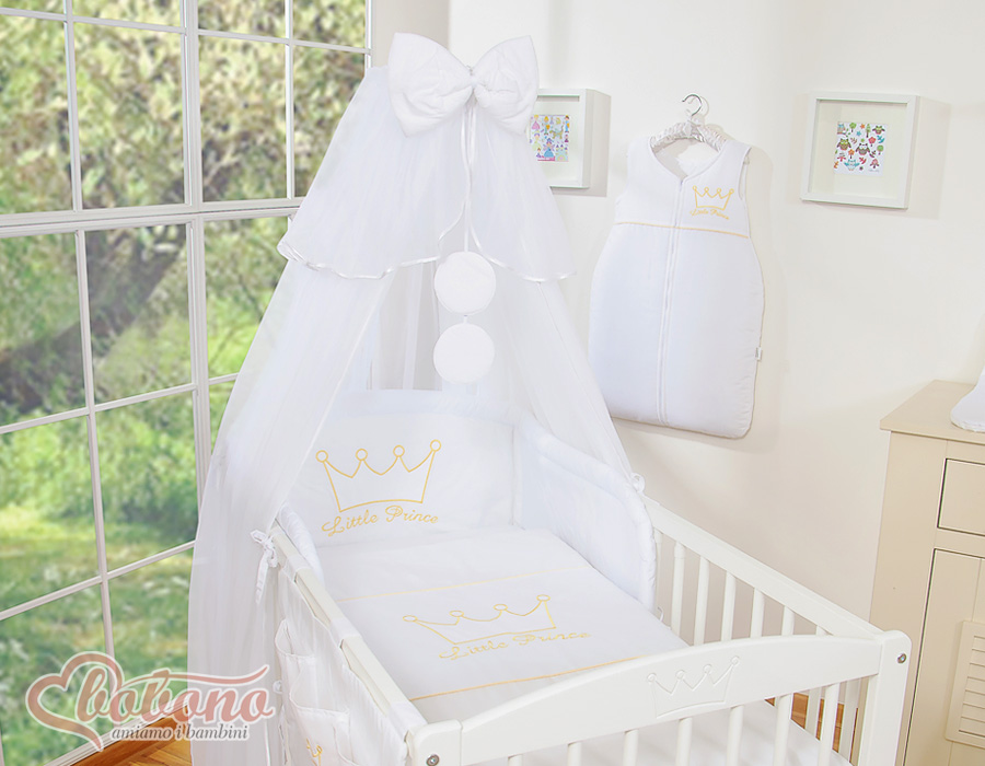Kleinbaby.nl » Beddengoed voor Ledikant » Beddengoed Set Collectie LITTLE PRINCE / PRINCESS » Baby beddengoed for Ledikant 120cm » Beddengoed 5 st met Klamboe Little Prince/Princess » Beddengoed Kinderbed 7 st met Klamboe - Wit Little Prince Princess