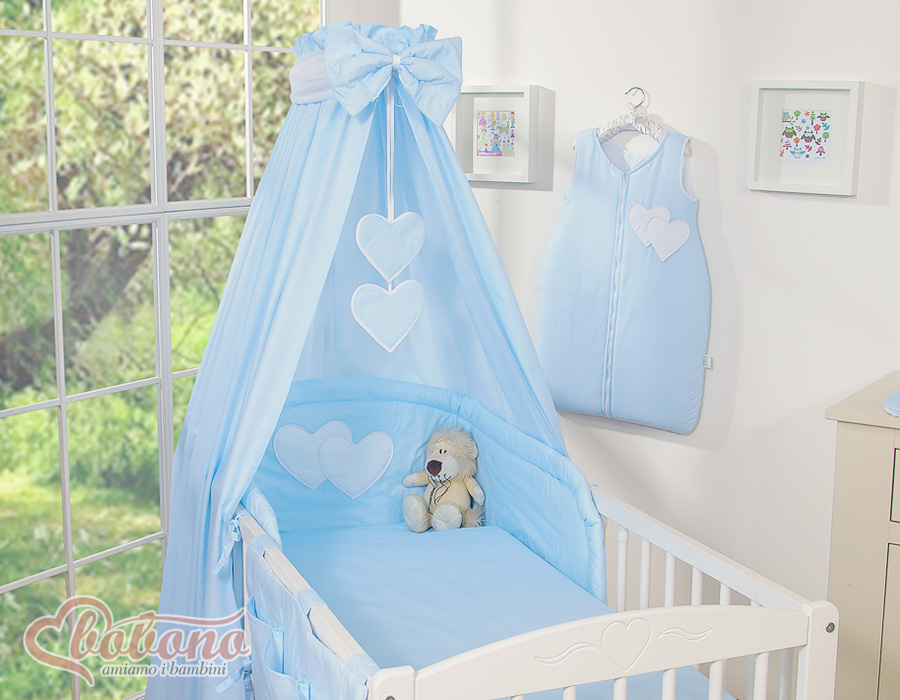 Kleinbaby.nl » Beddengoed voor Ledikant » Beddengoed Set Collectie Harten » 140cm ledikant Beddengoed Set » Beddengoed 11 st met Hemeltje - Harten » Beddengoed Ledikant 11 st met Hemeltje met sluierstang - Harten Blauw Snijder