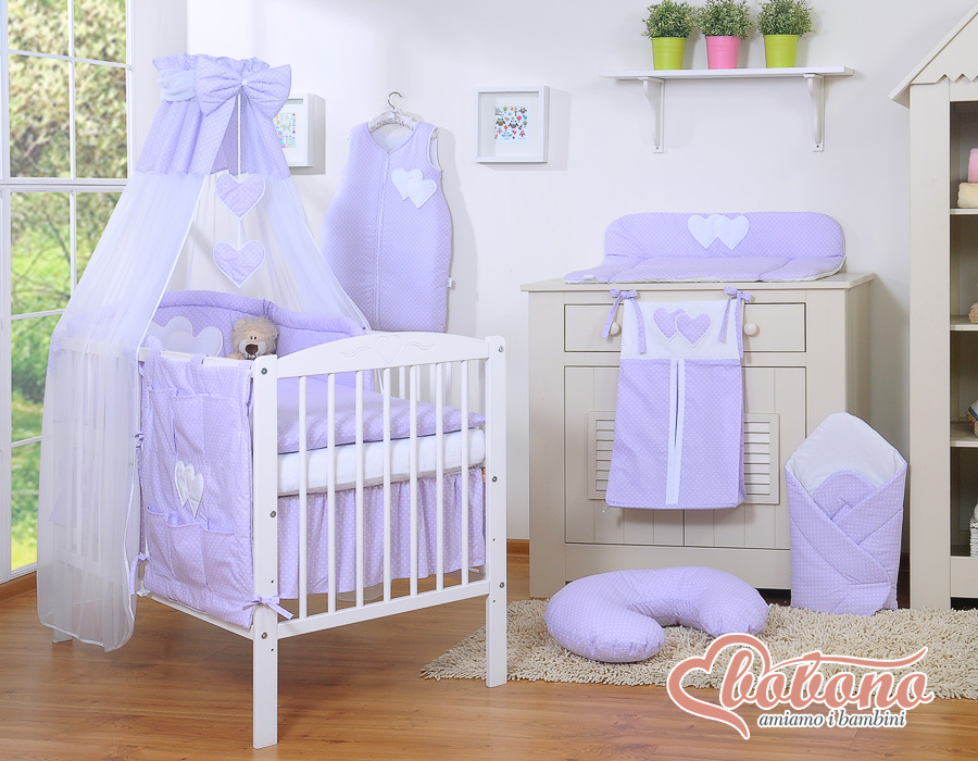 Beddengoed voor Babybed 11 st met Hemel Hemeltje - Harten Purper Polkaprikker