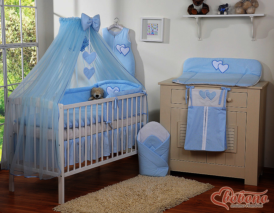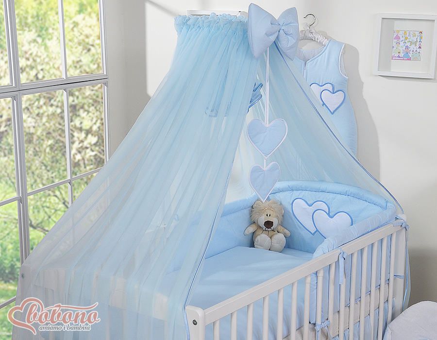 Kleinbaby.nl » Beddengoed voor Ledikant » Beddengoed Set Collectie Harten » 140cm ledikant Beddengoed Set » Beddengoed 11 st met Klamboe - Harten » Beddengoed voor Babybed 11 st met Hemel Klamboe - Harten Blauw
