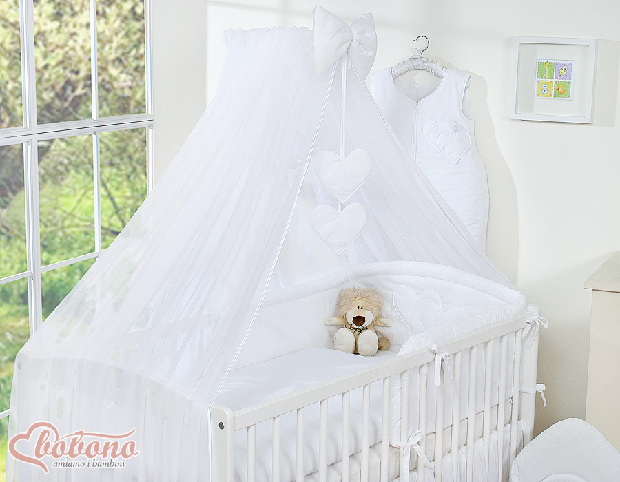 Kleinbaby.nl » Beddengoed voor Ledikant » Beddengoed Set Collectie Harten » 140cm ledikant Beddengoed Set » Beddengoed 11 st met Klamboe - Harten » Beddengoed voor Babybed 11 st met Hemel Klamboe - Harten Wit