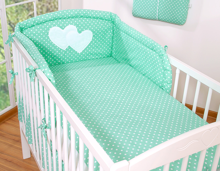 Kleinbaby.nl » Beddengoed voor Ledikant » Beddengoed Set Collectie Harten » 120cm ledikant Beddengoed Set » Beddengoed 2 st Harten » Beddengoed voor Babybed 2 st - Harten Mint