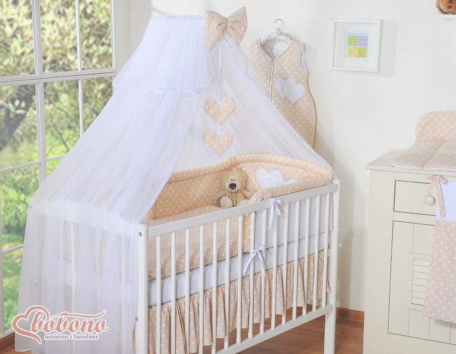 Beddengoed voor Babybed 5 st met Klamboe - Harten Beige Polkaprikker