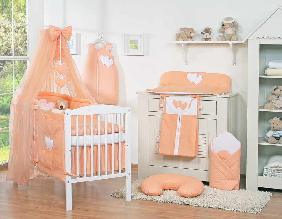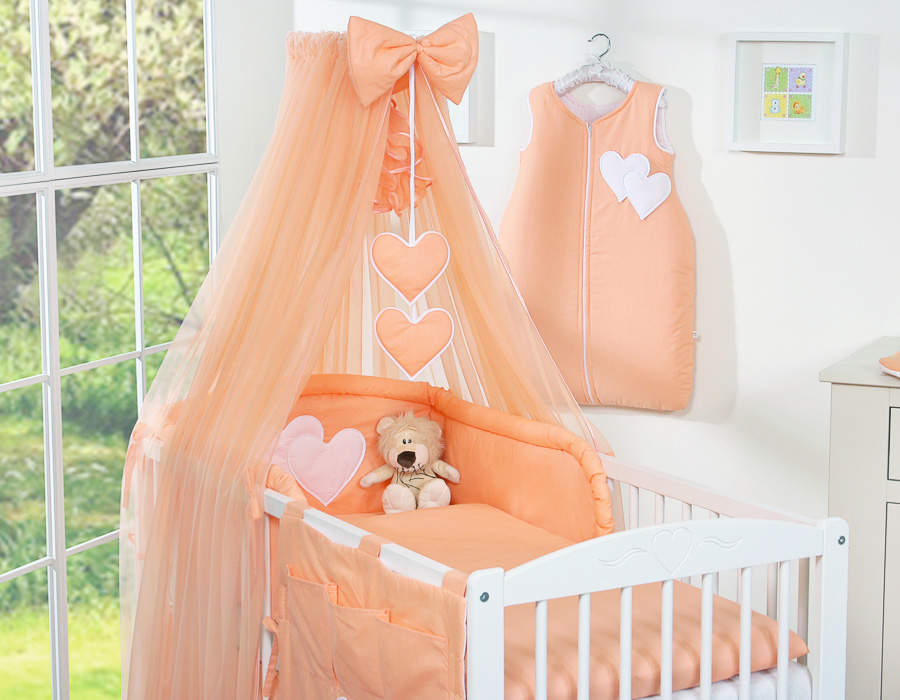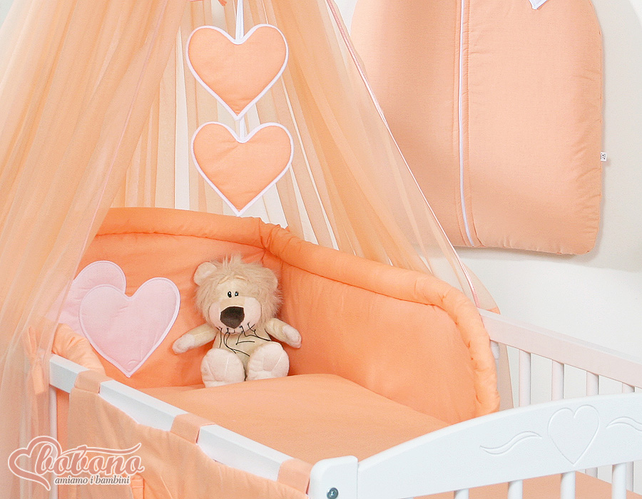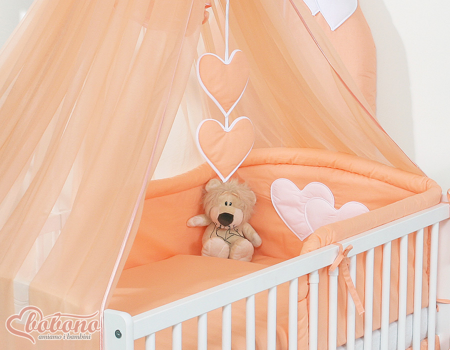 Kleinbaby.nl » Beddengoed voor Ledikant » Beddengoed Set Collectie Harten » 120cm ledikant Beddengoed Set » Beddengoed 7 st met Klamboe - Harten » Beddengoed voor Babybed 7 st met Hemel Klamboe - Harten Perzik