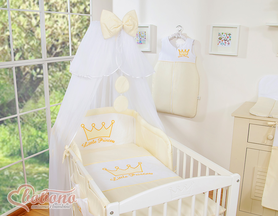 Kleinbaby.nl » Beddengoed voor Ledikant » Beddengoed Set Collectie LITTLE PRINCE / PRINCESS » Baby beddengoed for Ledikant 120cm » Beddengoed 5 st met Klamboe Little Prince/Princess » Beddengoed voor Babybed 7 st met Hemel Klamboe - Ivoor Little Prince Princess