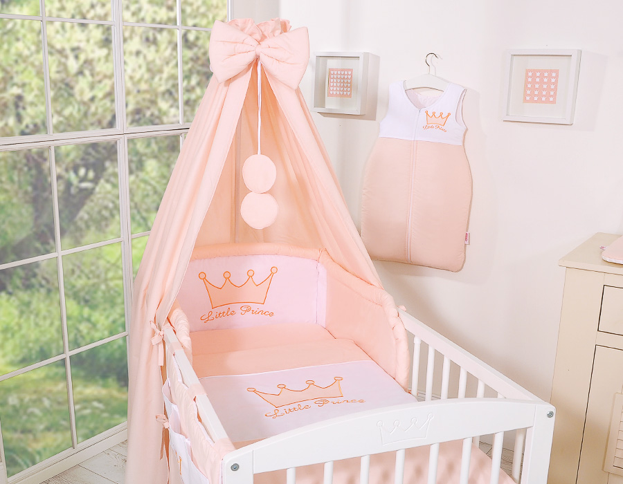 Kleinbaby.nl » Beddengoed voor Ledikant » Beddengoed Set Collectie LITTLE PRINCE / PRINCESS » Baby beddengoed for Ledikant 120cm » Beddengoed 5 st met Hemeltje Little Prince/Princess » Beddengoed voor Kinderbed 5 st met Hemeltje - Poederroze Little Prince Princess