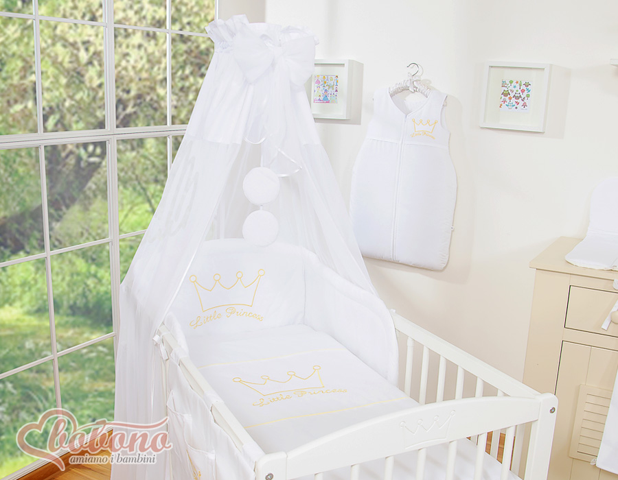 Kleinbaby.nl » Beddengoed voor Ledikant » Beddengoed Set Collectie LITTLE PRINCE / PRINCESS » Baby beddengoed for Ledikant 120cm » Beddengoed 5 st met Hemeltje Little Prince/Princess » Beddengoed voor Kinderbed 5 st met Hemeltje - Wit Little Prince Princess