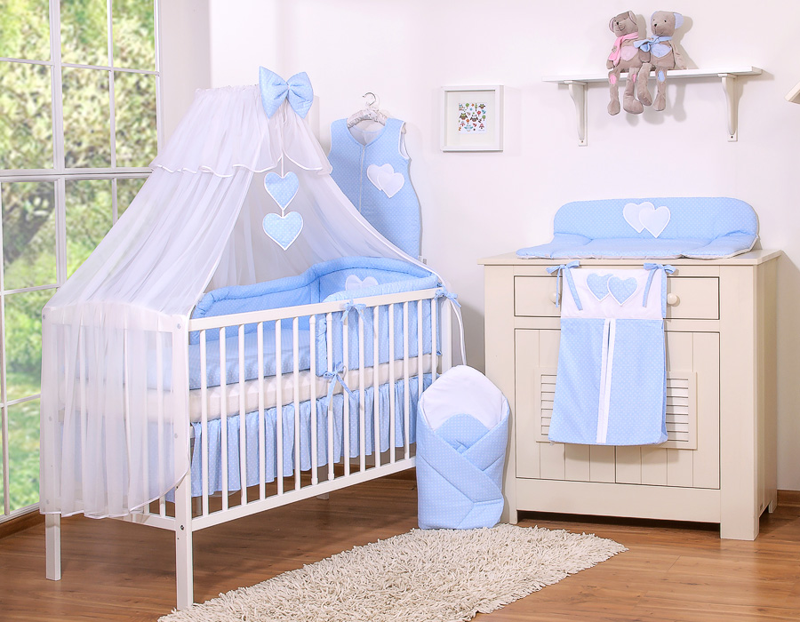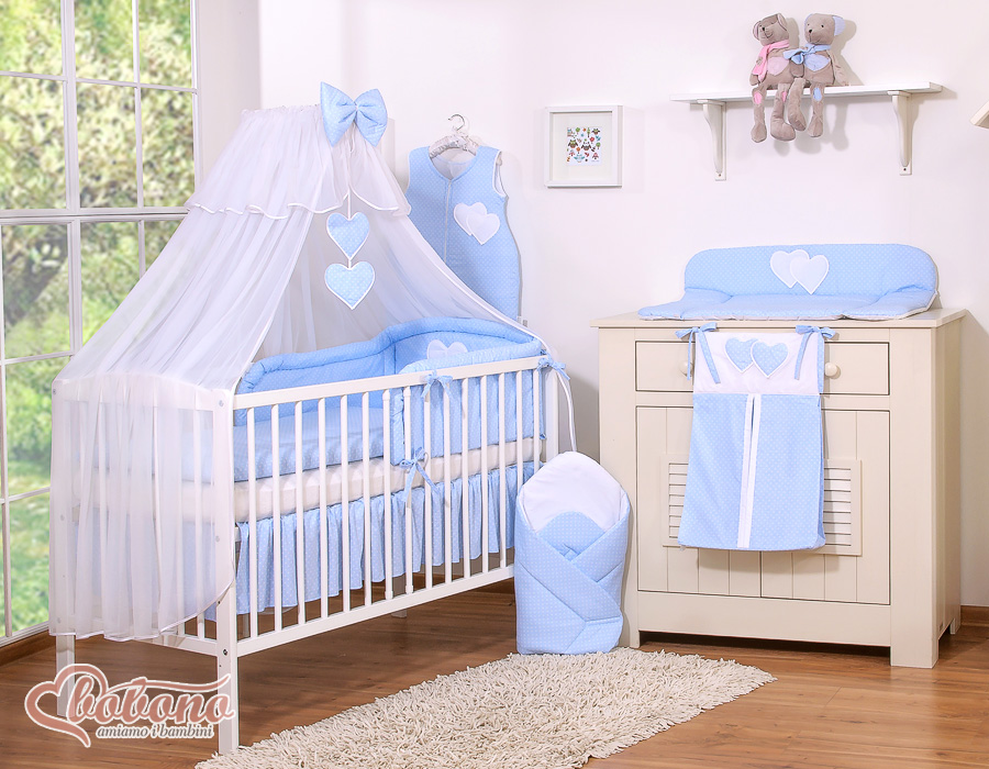 Kleinbaby.nl » Beddengoed voor Ledikant » Beddengoed Set Collectie Harten » 120cm ledikant Beddengoed Set » Beddengoed 5 st met Klamboe Harten » Beddengoed voor Kinderbed 5 st met Klamboe - Harten Blauw Polkaprikker