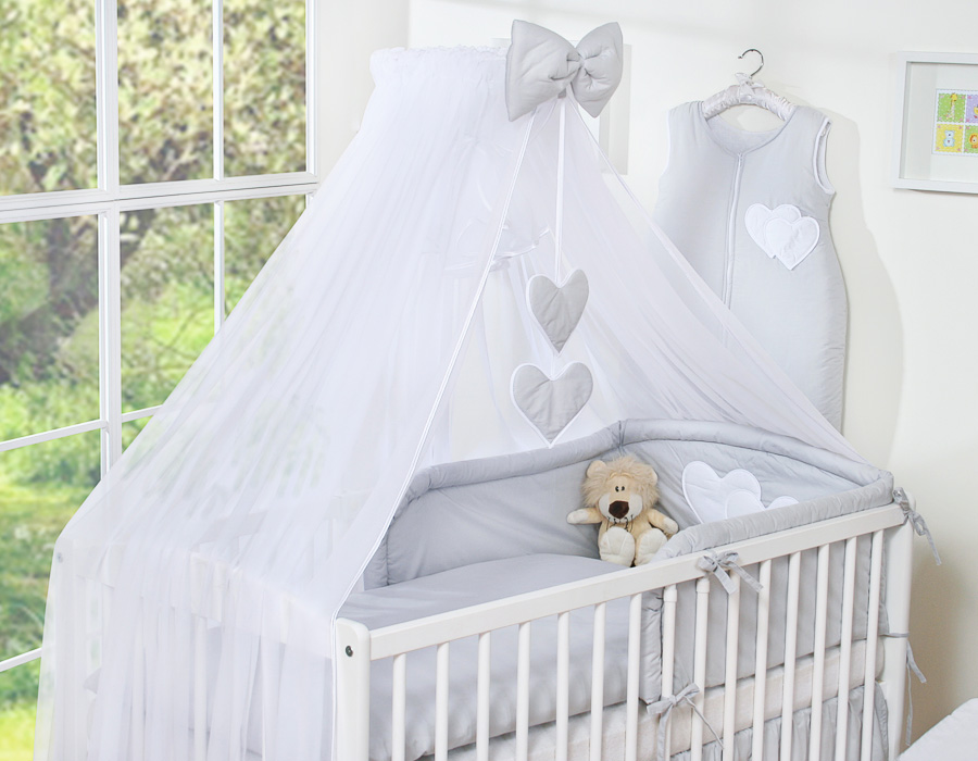 Kleinbaby.nl » Beddengoed voor Ledikant » Beddengoed Set Collectie Harten » 120cm ledikant Beddengoed Set » Beddengoed 5 st met Klamboe Harten » Beddengoed voor Kinderbed 5 st met Klamboe - Harten Grijs