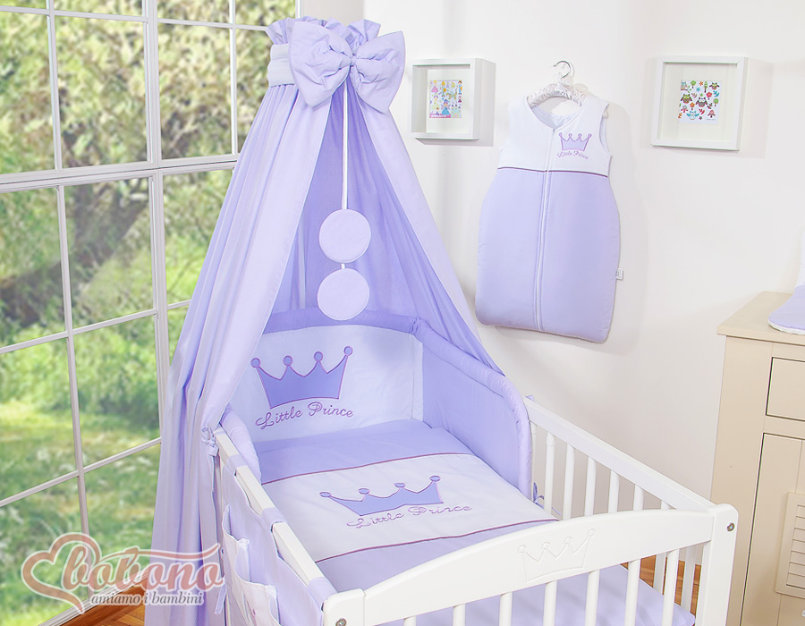 Kleinbaby.nl » Beddengoed voor Ledikant » Beddengoed Set Collectie LITTLE PRINCE / PRINCESS » Baby beddengoed for Ledikant 120cm » Beddengoed 11 st met Hemeltje » Beddengoed voor Ledikant 11 st met Hemeltje - Purper Little Prince Princess