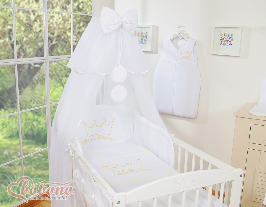 Kleinbaby.nl » Beddengoed voor Ledikant » Beddengoed Set Collectie LITTLE PRINCE / PRINCESS » Baby beddengoed for Ledikant 120cm » Beddengoed 11 st met Klamboe » Beddengoed voor Ledikant 11 st met Klamboe - arten Wit Little Prince Princess