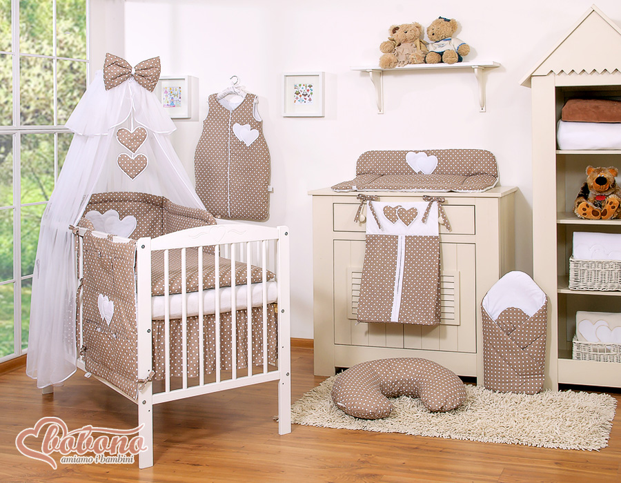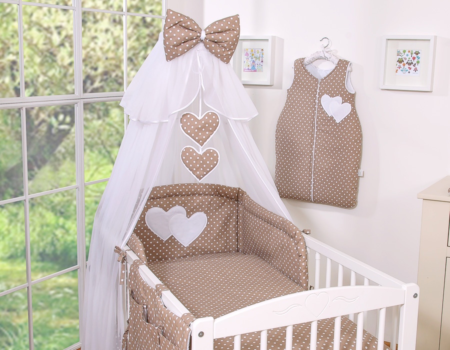 Kleinbaby.nl » Beddengoed voor Ledikant » Beddengoed Set Collectie Harten » 120cm ledikant Beddengoed Set » Beddengoed 5 st met Klamboe Harten » Beddengoed voor Ledikant 5 st met Klamboe - Harten Bruin Polkaprikker