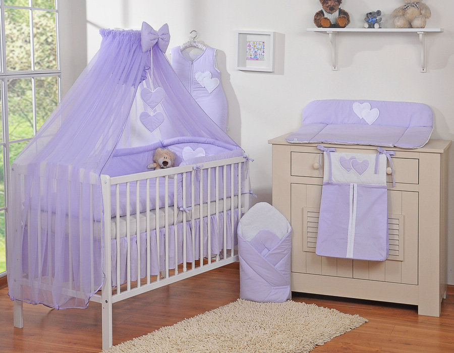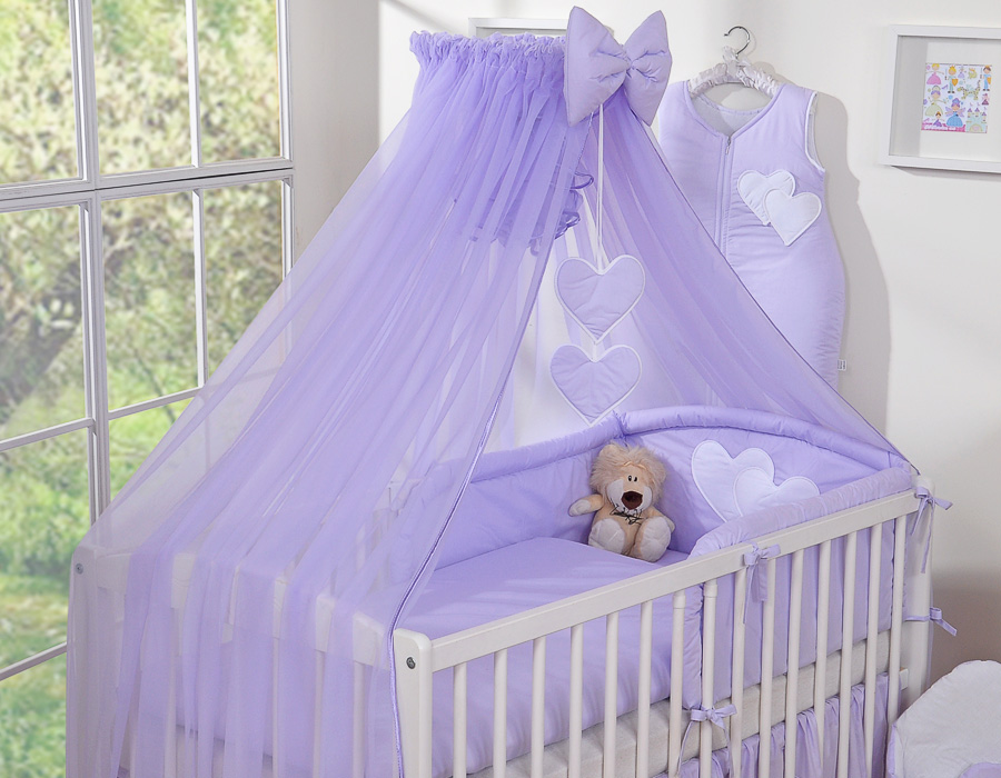 Kleinbaby.nl » Beddengoed voor Ledikant » Beddengoed Set Collectie Harten » 120cm ledikant Beddengoed Set » Beddengoed 5 st met Klamboe Harten » Beddengoed voor Ledikant 5 st met Klamboe - Harten Purper