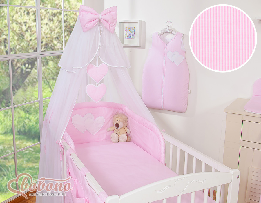Kleinbaby.nl » Beddengoed voor Ledikant » Beddengoed Set Collectie Harten » 120cm ledikant Beddengoed Set » Beddengoed 5 st met Klamboe Harten » Beddengoed voor Ledikant 5 st met Klamboe - Harten Roze Snijder