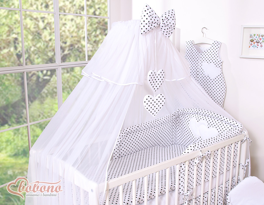 Beddengoed voor Ledikant 5 st met Klamboe - Harten Zwart Polkaprikker